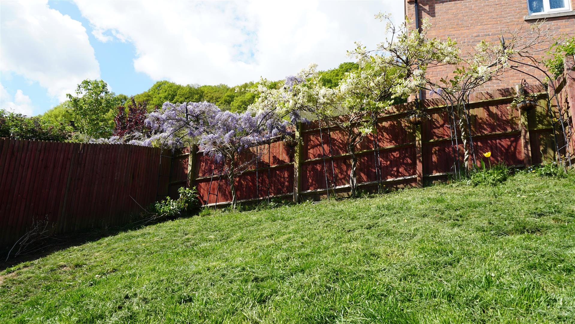 The enclosed west-facing rear garden comprises patio with steps up to a sloping lawn having attractive borders, shrubs and small trees.