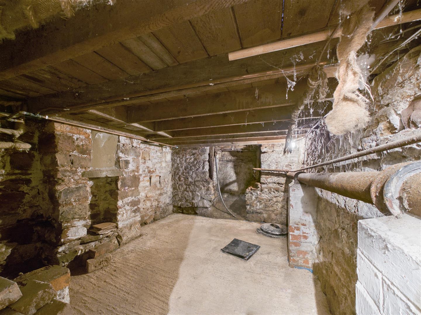 Cellar - 4.80m x 2.82m (15'9 x 9'3) - Lighting, stone steps, remnants of the original fireplace.
