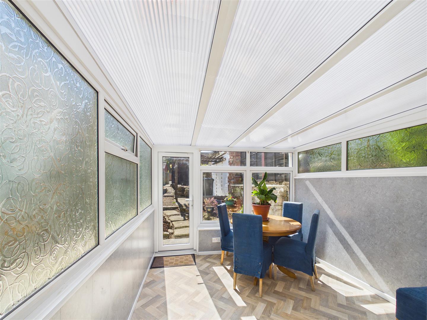 Conservatory - 2.84m x 2.74m (9'4 x 9'0) - Upvc construction with dwarf walls, polycarbonate roof, wetboard walls, power, obscure glazed windows to side, door giving access to the rear garden.