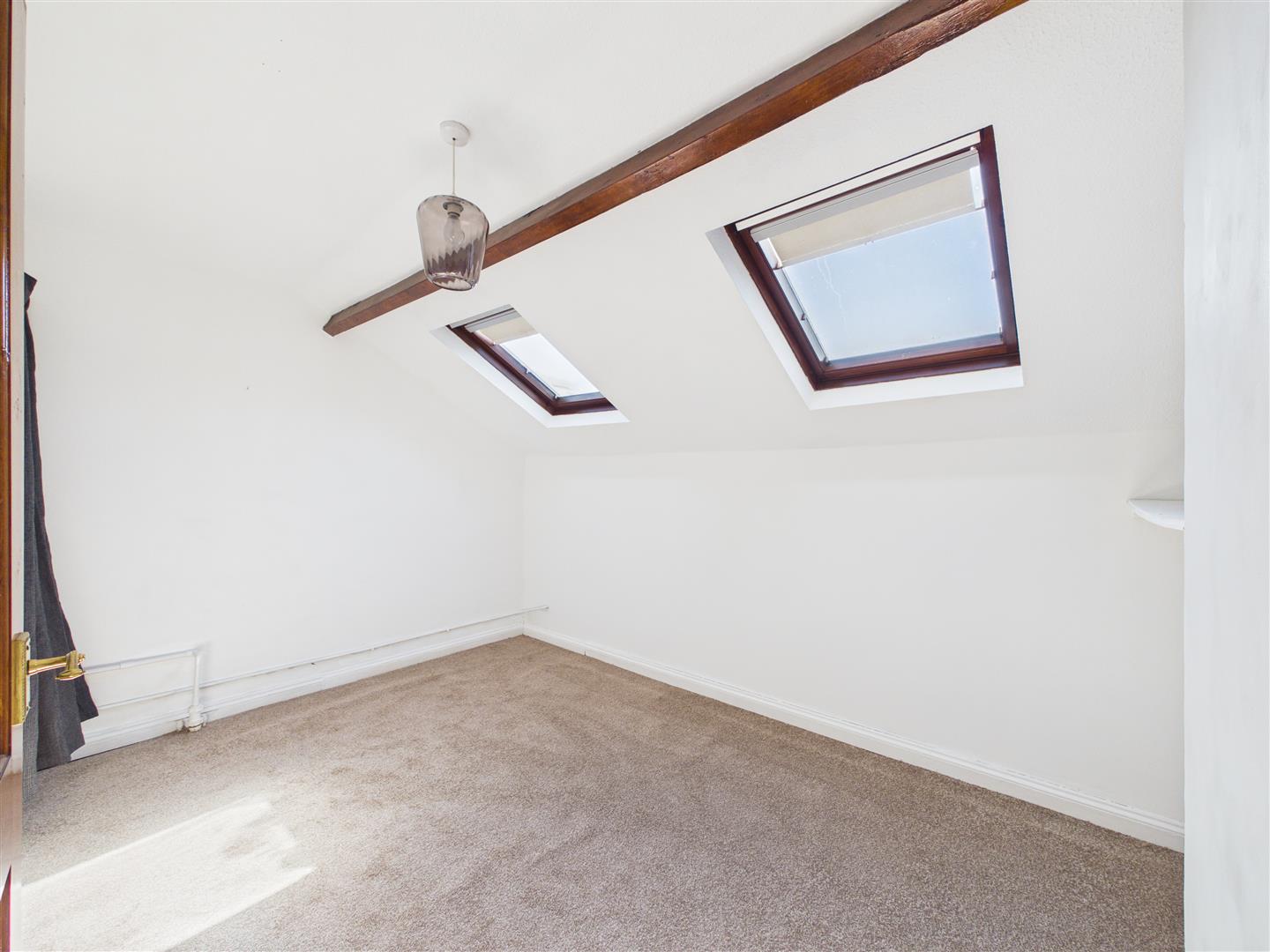 Bedroom Two - 2.51m x 3.71m (8'3 x 12'2) - Ceiling light, exposed ceiling timber, two rear aspect ceiling skylights, single radiator, power points, curtain giving access to cupboard storage housing the gas fired central heating and domestic hot water boiler.
