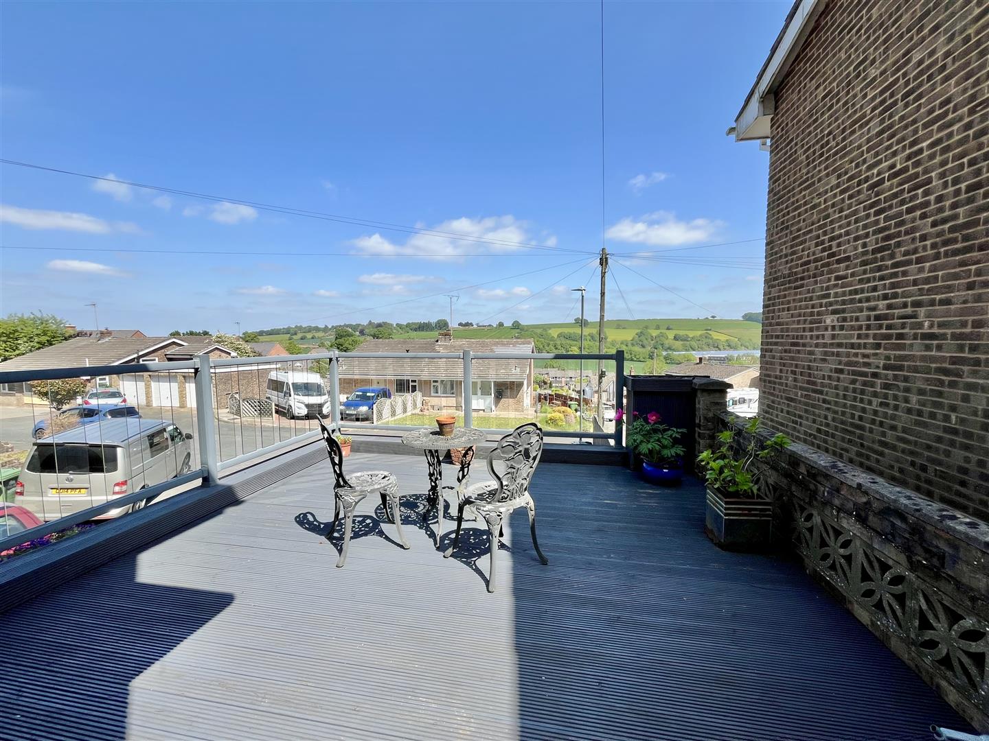 Outside - Steps lead up to a decked terrace with a balustrade-an ideal spot to enjoy the morning sun while taking in the stunning views of the surrounding countryside.