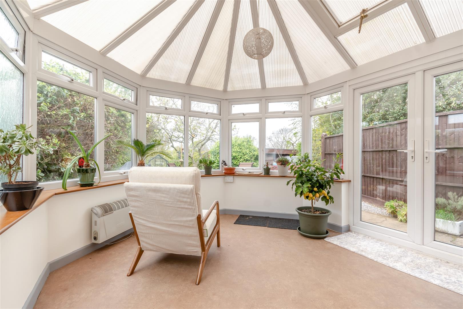 Conservatory - 3.78m x 3.51m (12'5 x 11'6) - UPVC double glazed construction, plumbing for washing machine, wall mounted electric heater, private outlook over the mature gardens, fully glazed French doors to the garden.