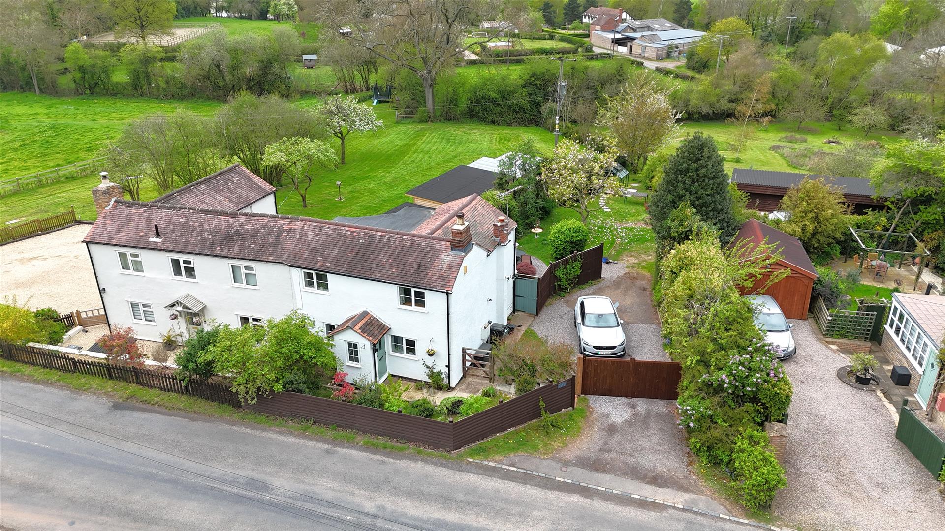 Outside - To the front of the property, a pathway leads to the front door, bordered by lawn, a variety of shrubs and bushes, exterior lighting and enclosed fencing. To the side of the property, double timber gates open onto a gravelled parking and turning area, providing parking space for three / four vehicles. Gated access leads to the rear garden, which offers multiple lawned areas, mature trees, shrubs, and bushes, along with an outbuilding which was formerly used as stables and a tack room (measuring approximately 34'6" x 12'6") with a further workshop and two storage areas, benefiting from power, lighting, and mains water. The rear grounds feature a large expanse of lawn / paddock, fruit trees, a vegetable growing area, natural hedging boundaries and a newly constructed greenhouse.