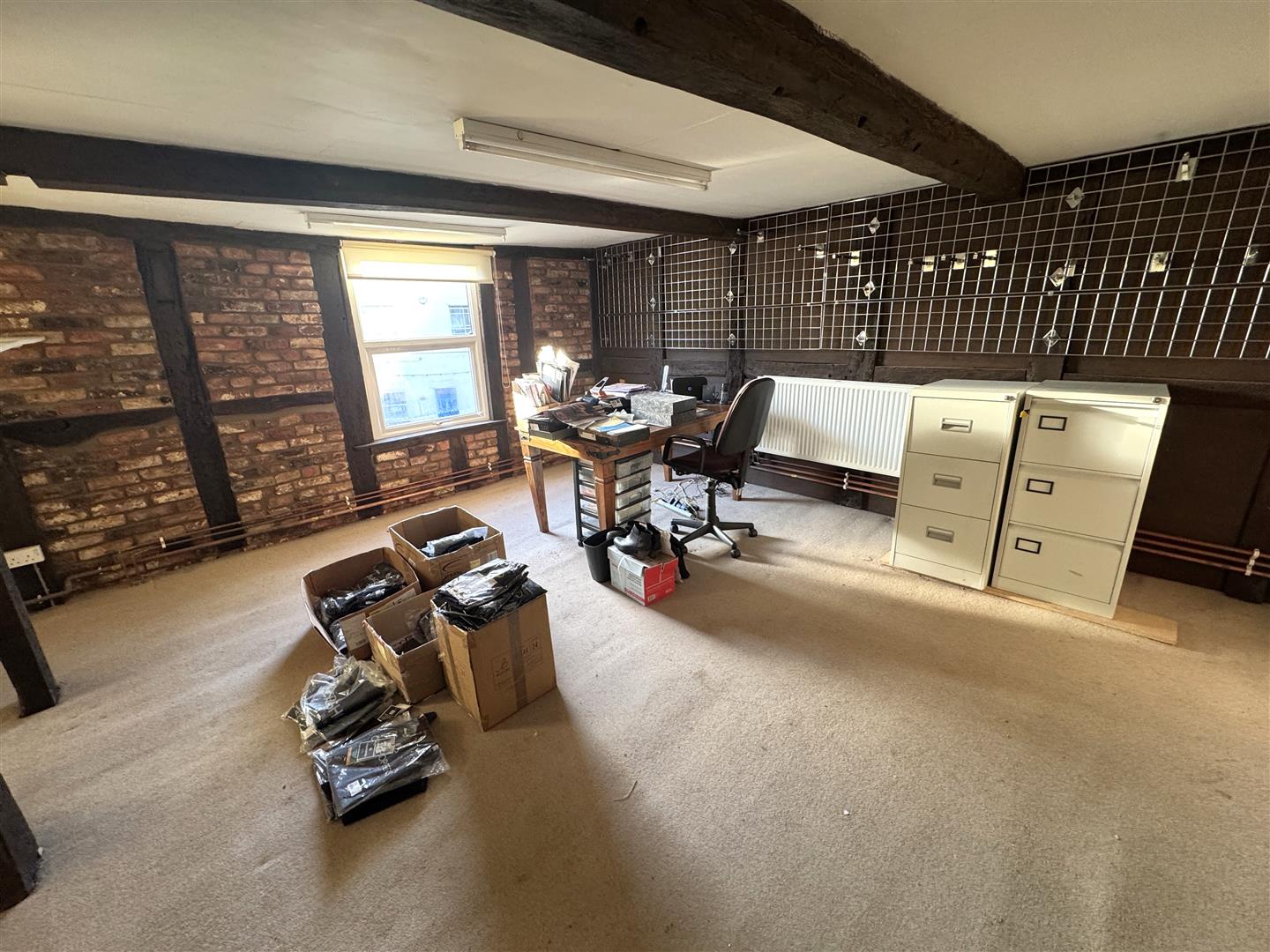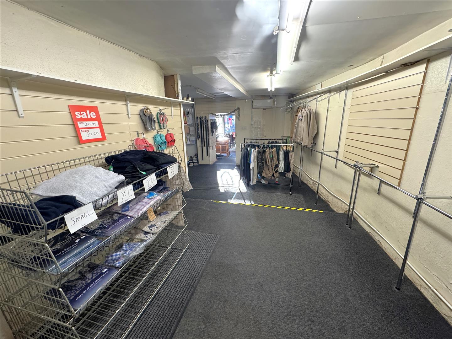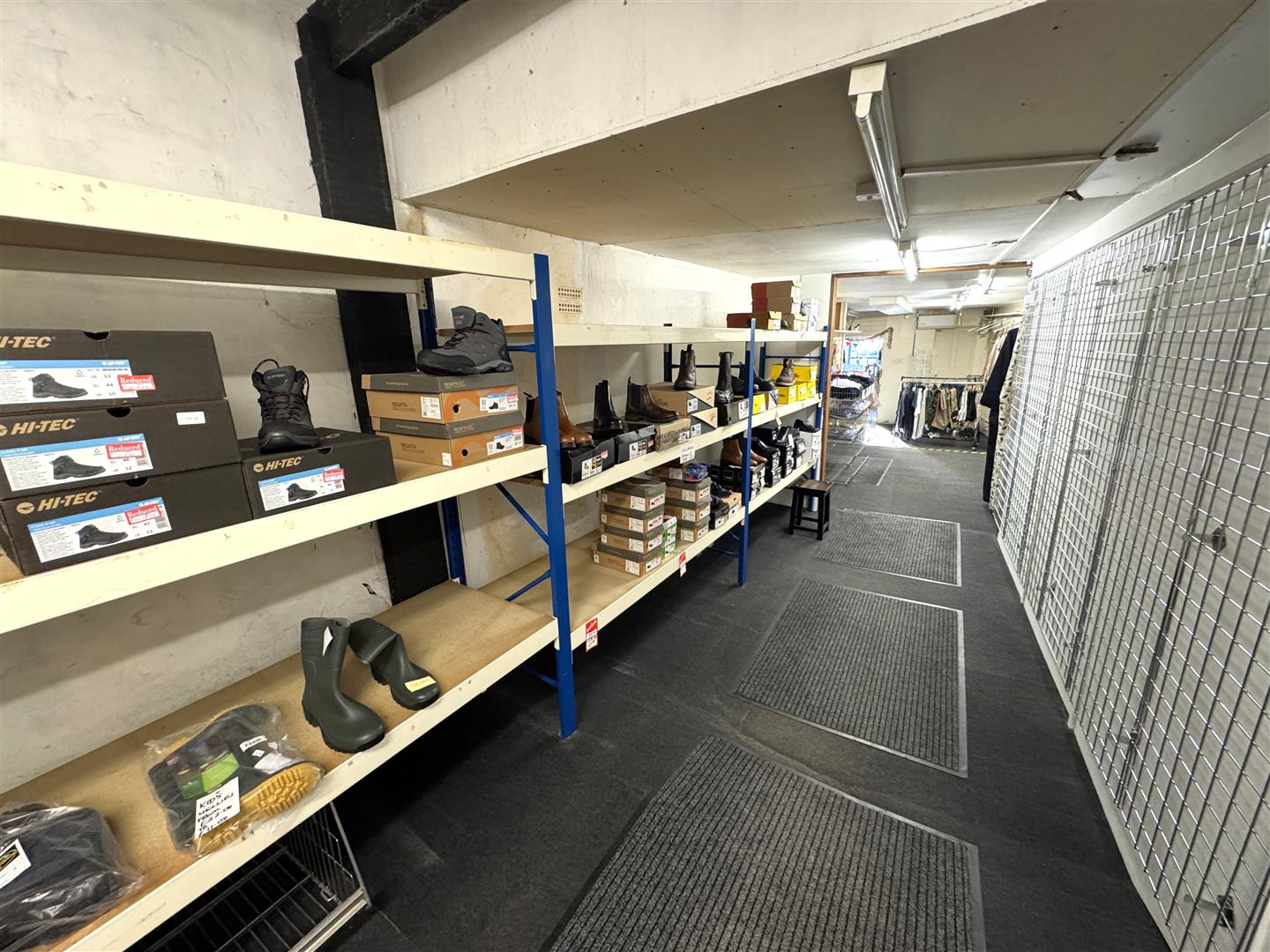 Sales Area 2 - 11.68m x 3.76m narrowing to 3.00m (38'04 x 12'04 n - Shelving and racking, changing room, heating / air conditioning unit.