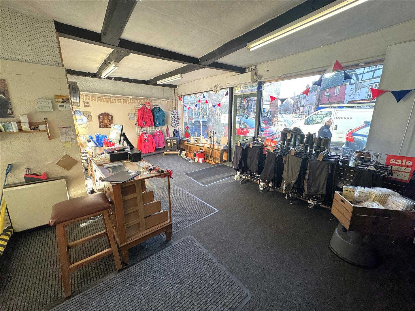 Front Shop Area - 7.47m x 4.80m (24'6 x 15'9) - Counter with till, racking and display areas, night storage heater, two large double display windows to the front. Opening through to: