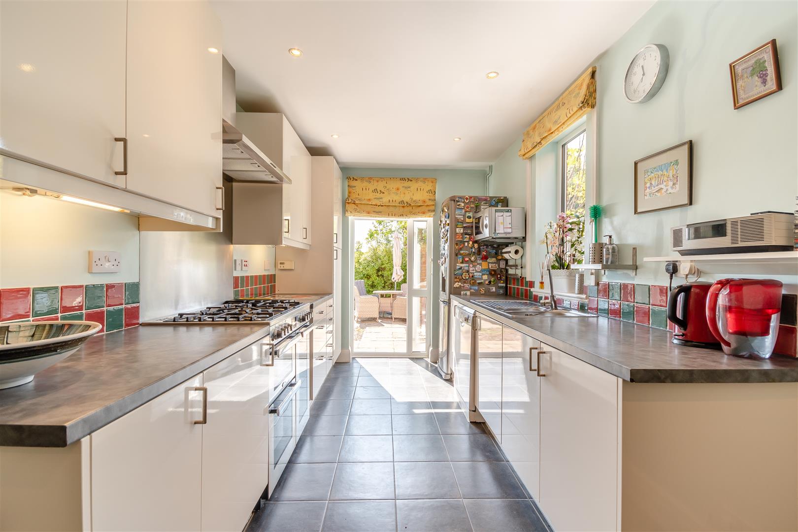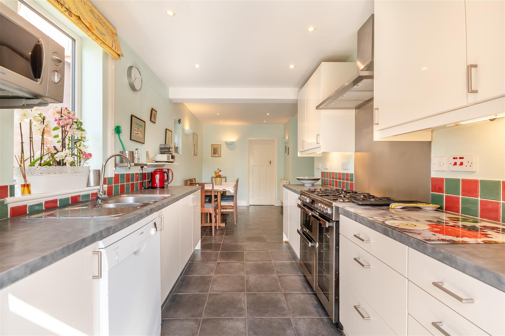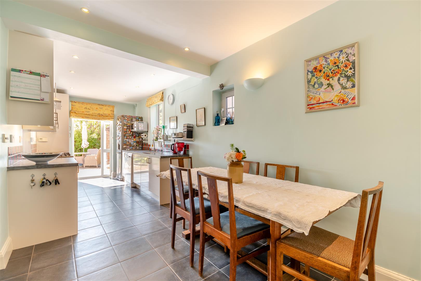 Kitchen / Family Room - 7.37m x 3.51m max (24'2 x 11'6 max) - The kitchen has a range of base, wall and drawer mounted units, space for large cooker, one and a half bowl single drainer sink unit with mixer tap over, plumbing for dishwasher, space for large fridge / freezer, space for large table and chairs, inset ceiling lights, radiator, door to understairs storage, two rear aspect UPVC double glazed windows, side aspect UPVC double glazed door to the patio. Door to: