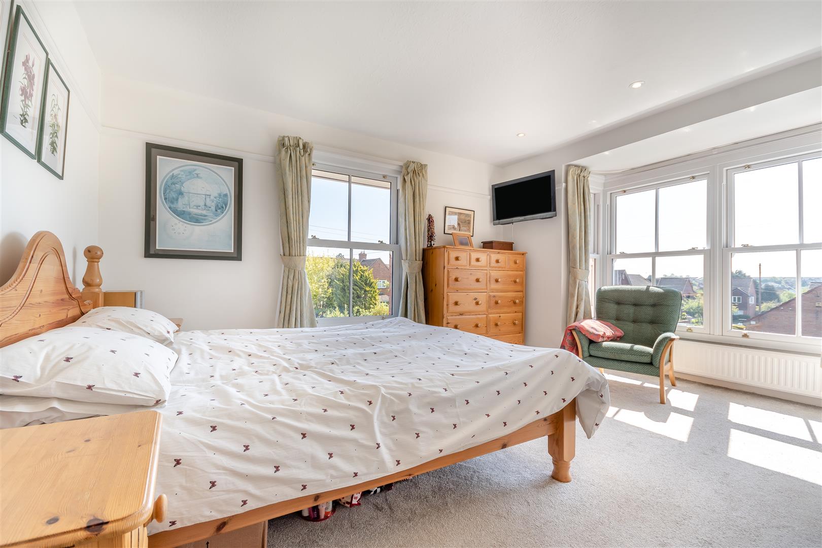 Bedroom 1 - 4.04m x 3.78m (13'3 x 12'5) - Radiator, television point, inset ceiling lights, picture rail, front and side aspect UPVC double glazed sash windows, the bay window to the front holding four sash windows and overlooks Newent church and May Hill. Door to: