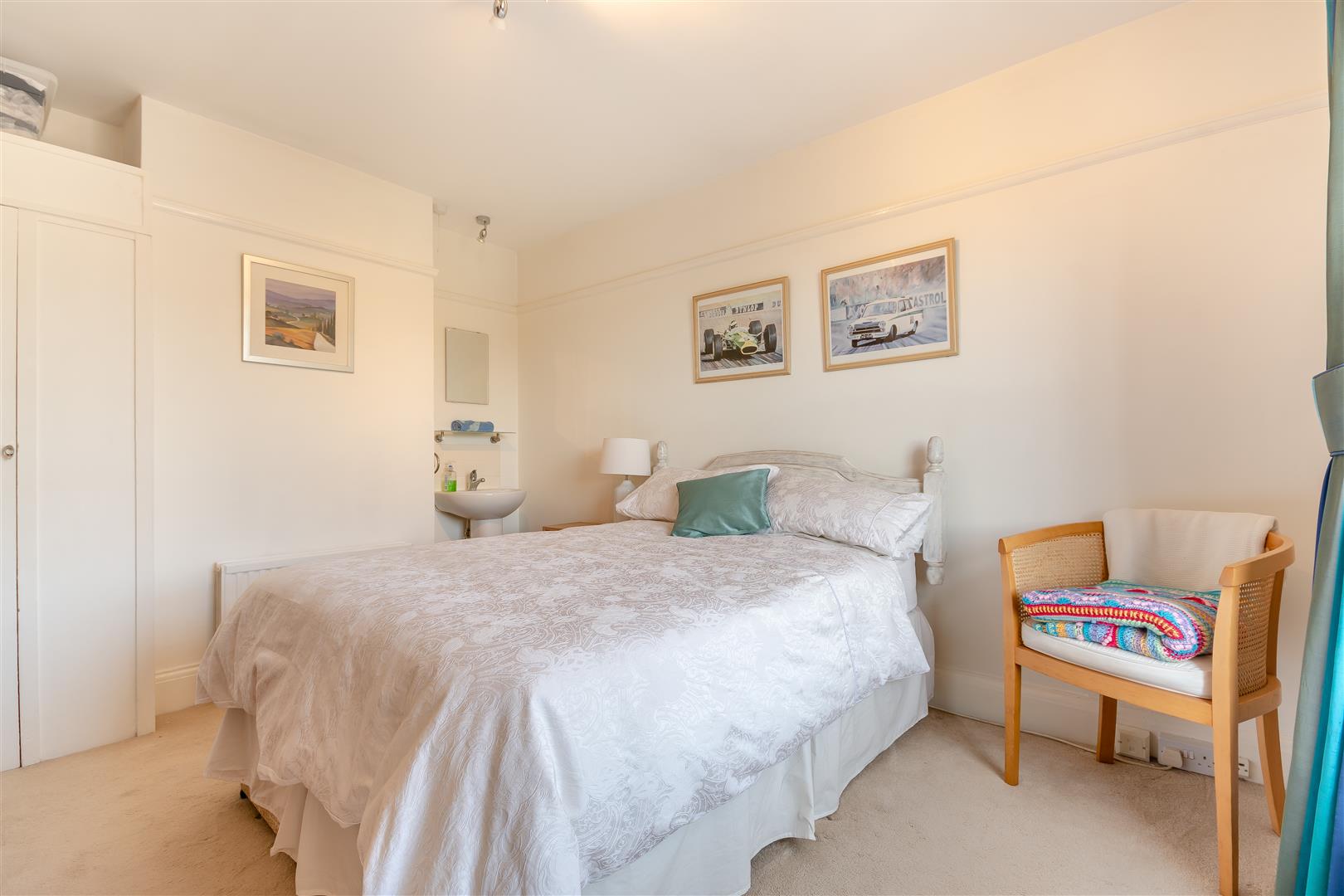 Bedroom 2 - 3.94m x 3.20m (12'11 x 10'6) - Radiator, power points, picture rail, pedestal wash hand basin with tiled splashback, cupboard with single wardrobe with hanging rail and shelving, front aspect UPVC double glazed sash window.