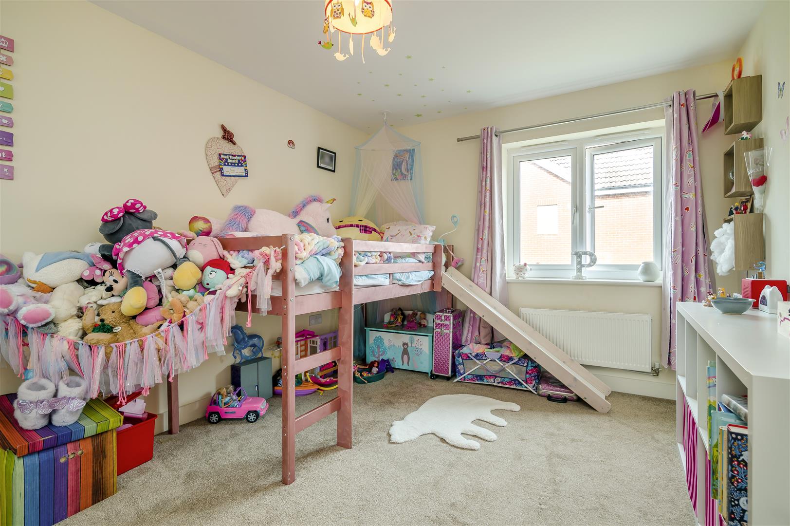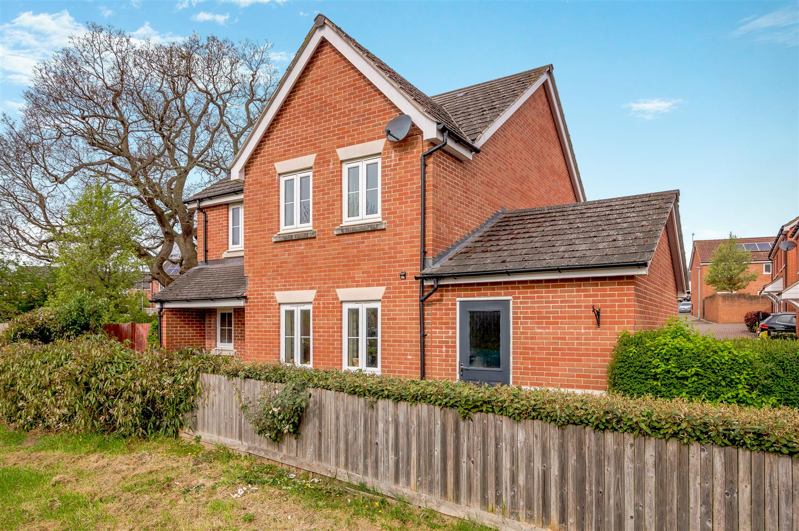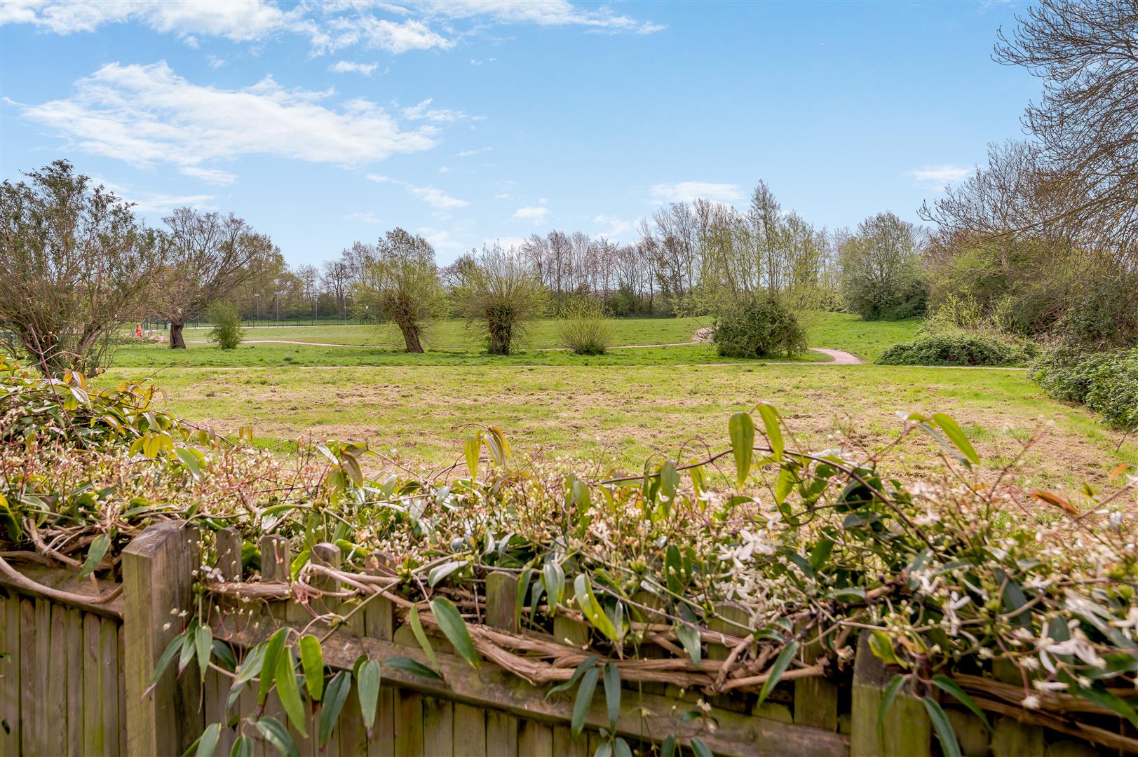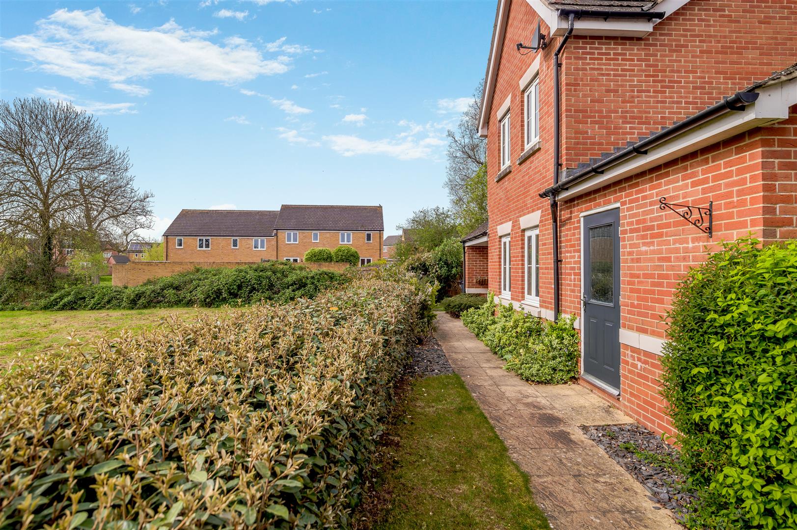 The front garden area is laid to lawn with purple slate. There are further beds planted with shrubs and bushes and it is all enclosed by low fencing, enjoying the views over the open parkland. There is a bin storage area and a canopy area over the front door and gated access to the back garden from the front and side parking area. The property enjoys the largest plot on the entire estate, which is mainly laid to lawn with planted borders, outside lighting, large wooden built workshop, mature Oak tree providing dappled shade on a hot day. The gardens are enclosed by wooden panelled fencing and measure approximately 70' x 70' maximum.