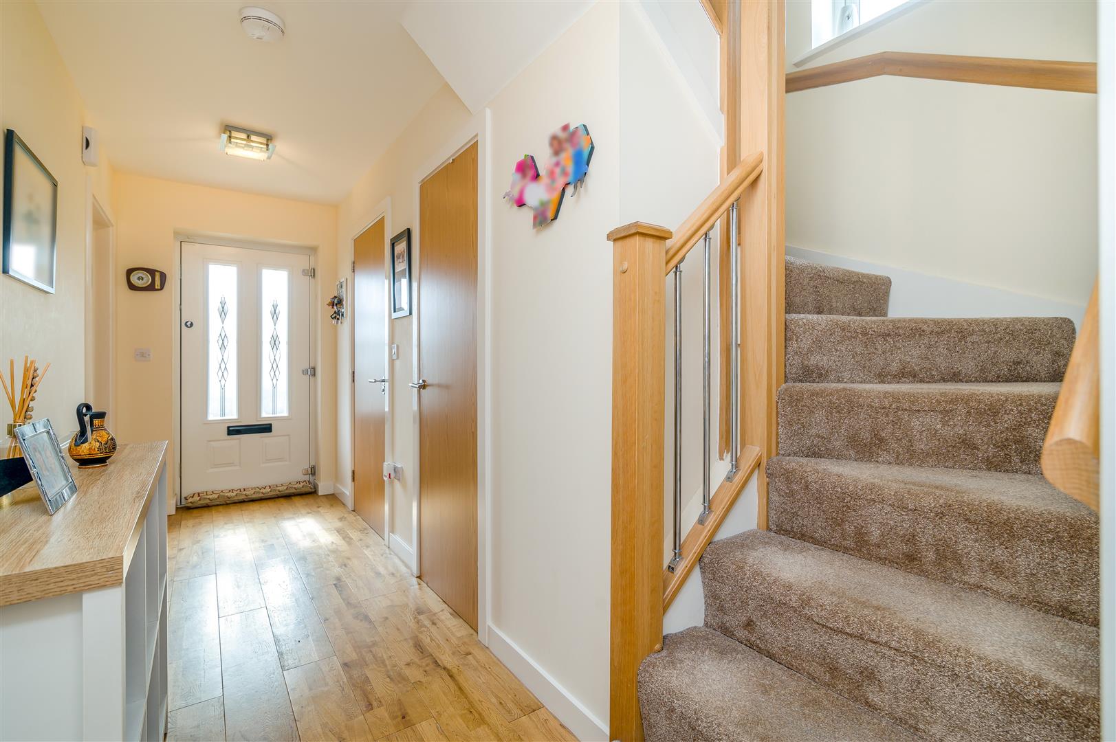 Entrance Hall - Engineered oak flooring, single radiator, turning staircase leading off. Door to walk-in understairs storage cupboard with shelving and storage, housing the Potterton gas-fired boiler.