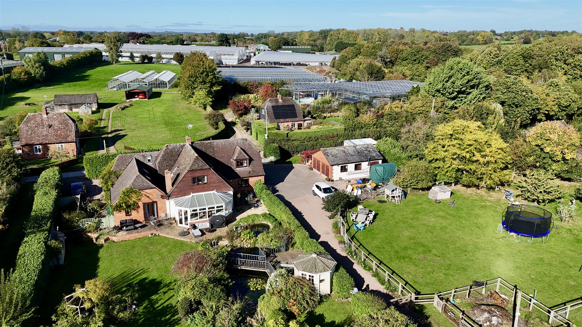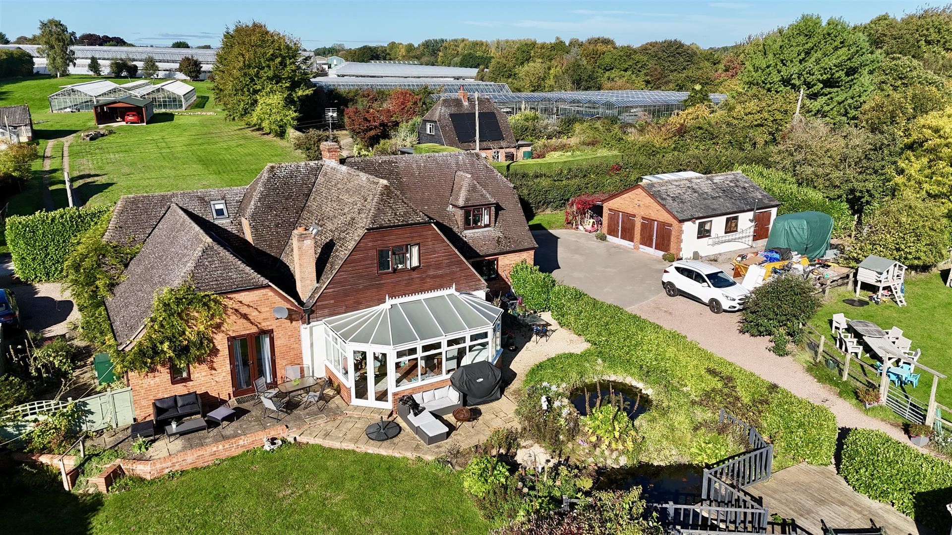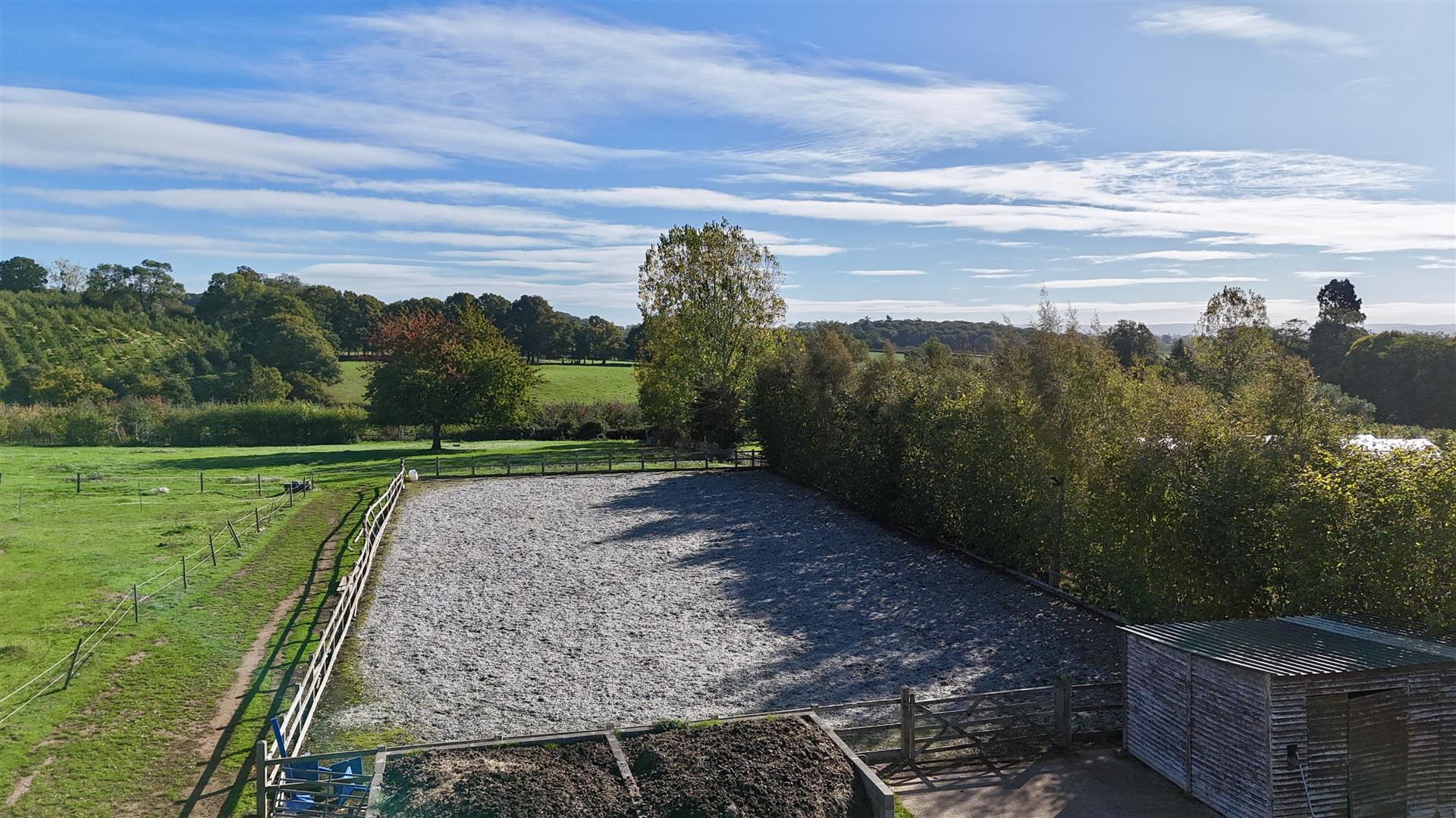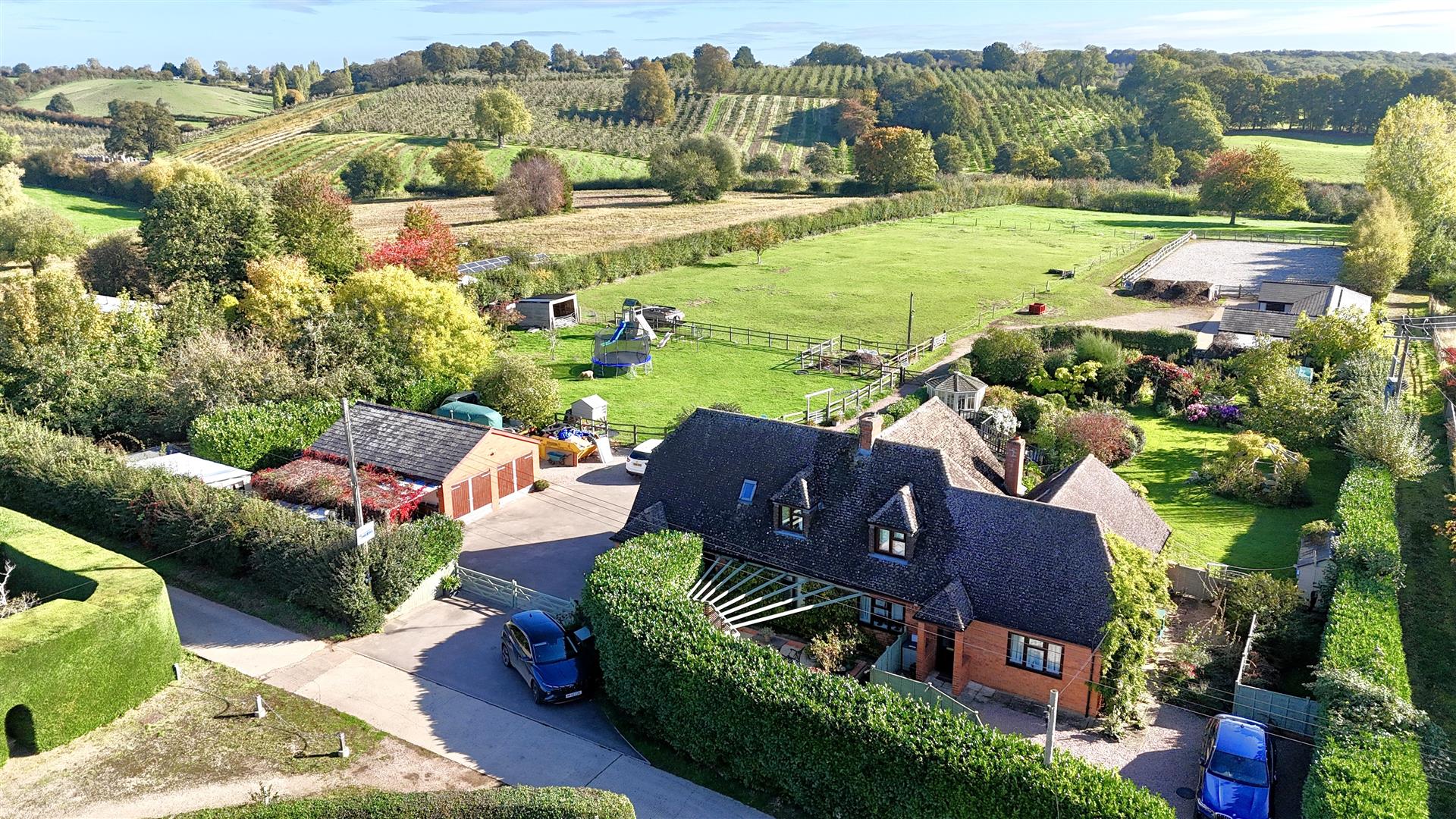 A RARELY AVAILABLE FOUR BEDROOM DETACHED HOUSE with ATTACHED ONE / TWO BEDROOM SUBSTANTIAL ANNEXE, IDEALLY SET UP FOR EQUESTRIAN USE with a RANGE OF OUTBUILDINGS TO INCLUDE FIVE BAY STABLE BLOCK plus LARGE TACK ROOM, YARD and ALL WEATHER MENAGE, THREE PADDOCKS, LARGE DOUBLE GARAGE and WORKSHOP, all with LOVELY VIEWS TO THE REAR OVER MATURE FIELDS AND ORCHARD, THE WHOLE PLOT AMOUNTING TO APPROXIMATELY 3.1 ACRES.