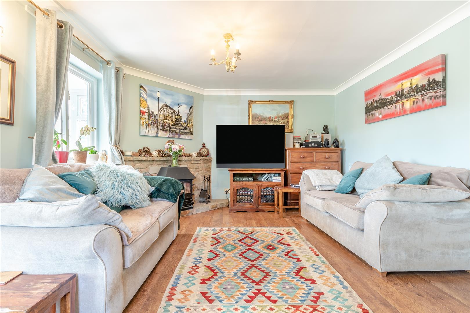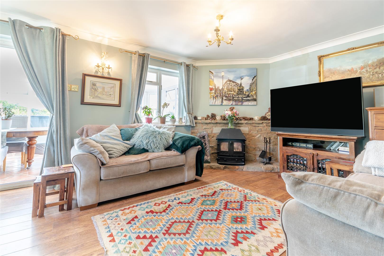 Living Room - 7.09m x 3.76m (23'3 x 12'4) - Stone fireplace with inset wood burning stove, double and single radiators, side and rear aspect windows with a lovely aspect over the gardens. Sliding patio door through to: