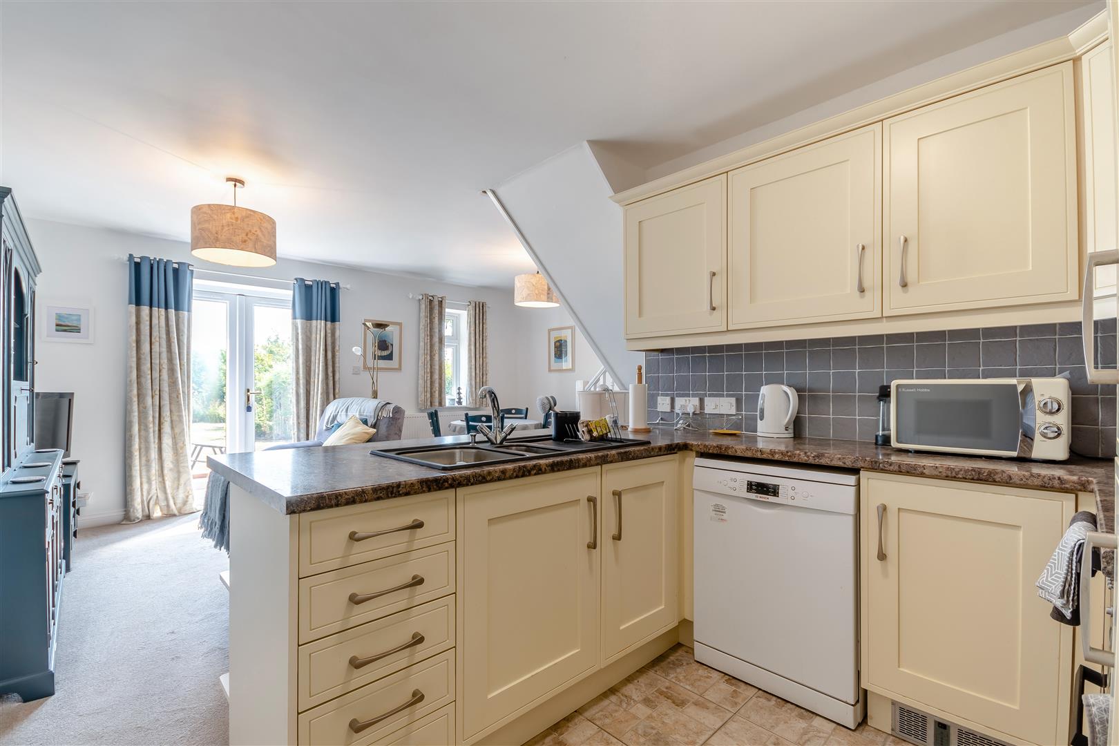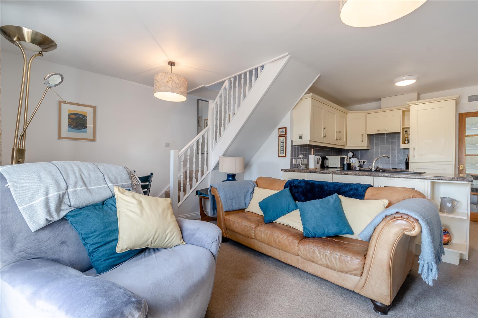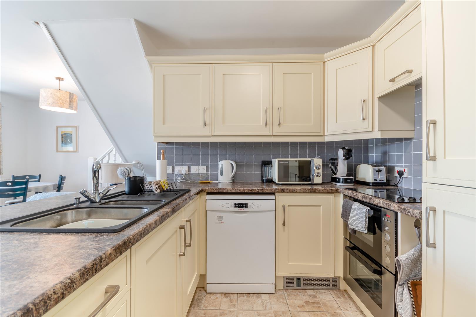 Kitchen / Living Room - 5.05m x 3.28m max (16'7 x 10'9 max) - The kitchen area has a modern fitted kitchen to comprise one and a half bowl single drainer sink unit with mixer tap, cupboards under, range of base and wall mounted units, fitted electric double oven, four ring hob, cooker hood above, integrated fridge / freezer, plumbing for dishwasher.