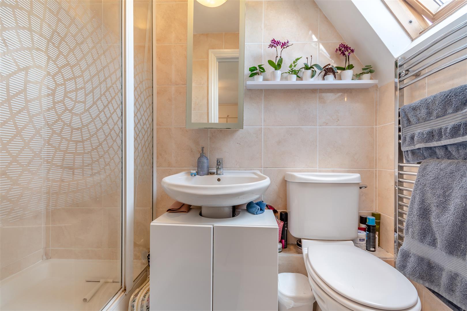 En-Suite Shower Room - Fitted shower cubicle and tray, shower, tiled surround, wash hand basin, close coupled WC, heated towel rail, front aspect Velux roof light.