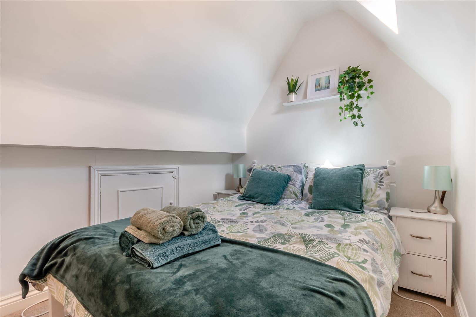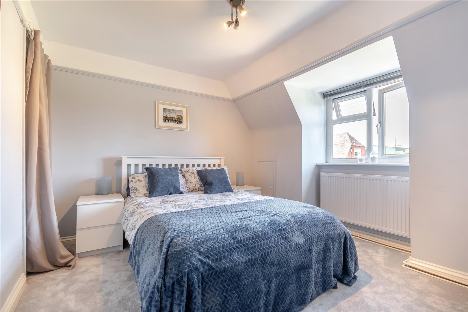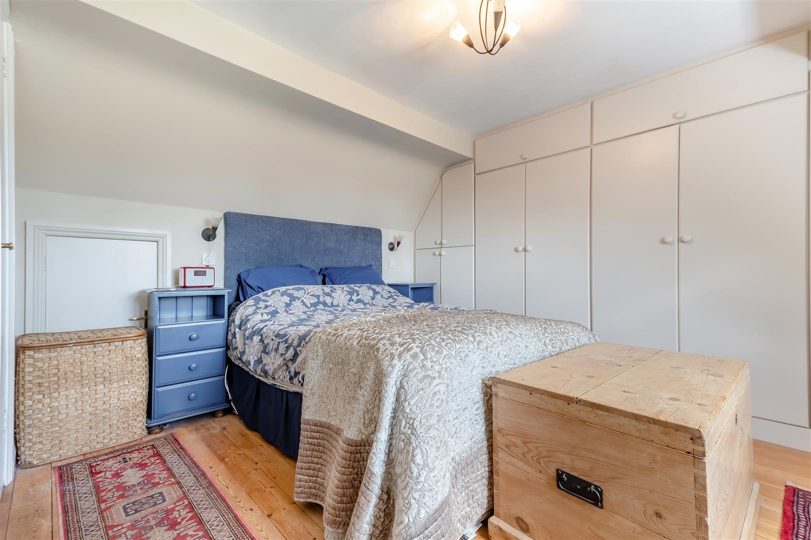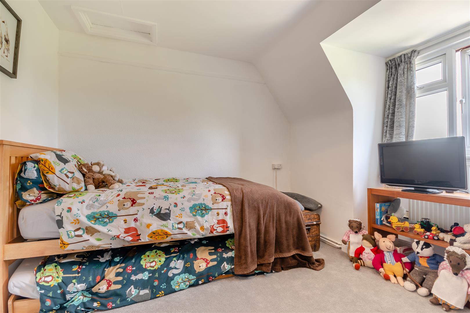 Bedroom 3 - 3.78m x 3.53m (12'5 x 11'7) - Built-in wardrobe cupboard with hanging rail and shelving, eaves storage, double radiator, front aspect window.