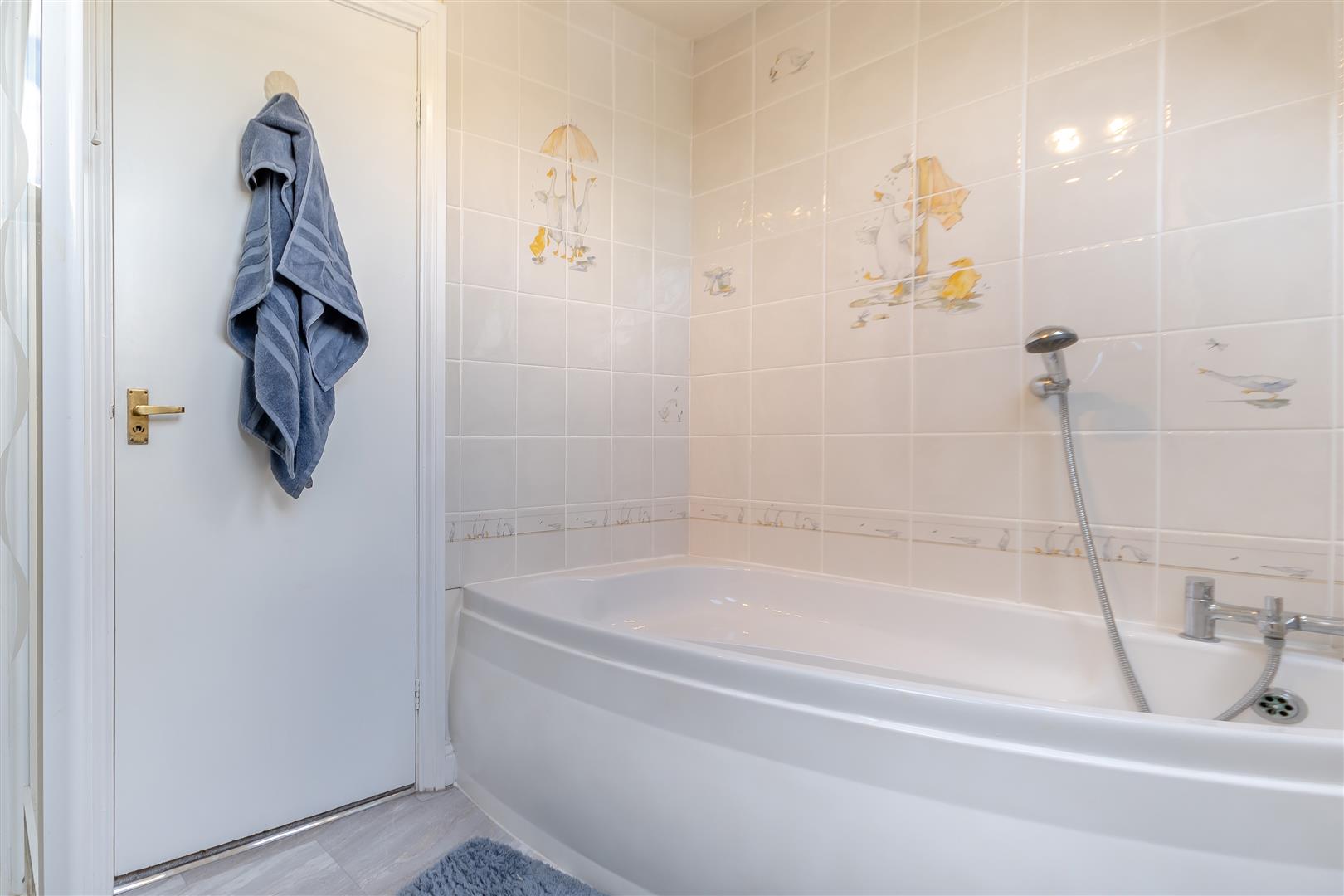 En-Suite Bathroom - Fitted white suite comprising panelled bath, tiled surround, close coupled WC, pedestal wash hand basin, heated towel rail.
