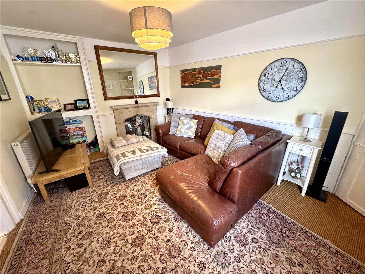 Lounge - 4.17m x 3.35m (13'8 x 11'0) - Lovely stone fireplace with raised hearth, dado rail, picture rail, built-in corner cupboard with shelving over, further built-in shelving, double radiator, front aspect window.