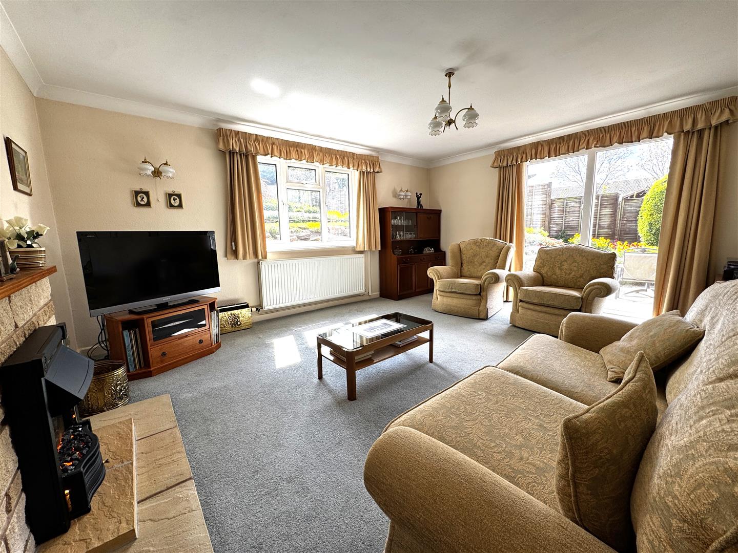 Lounge - 4.93m x 4.09m (16'2 x 13'5 ) - Fireplace housing electric fire, gas point, wall light fittings, radiator, side aspect sliding doors to the patio seating area, rear aspect window overlooking the gardens.