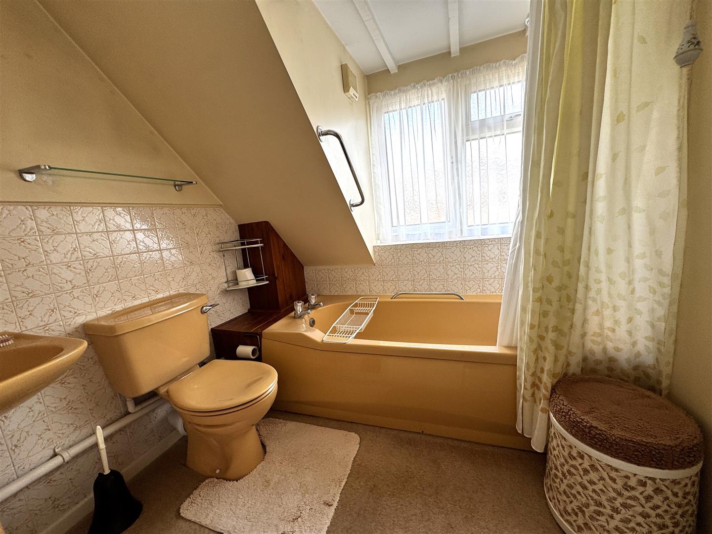 Family Bathroom - 2.13m x 2.01m (7'0 x 6'7) - Three piece coloured suite comprising of panelled bath with Mira advanced electric shower over, WC, wash hand basin, extractor fan, side aspect frosted window, single radiator.