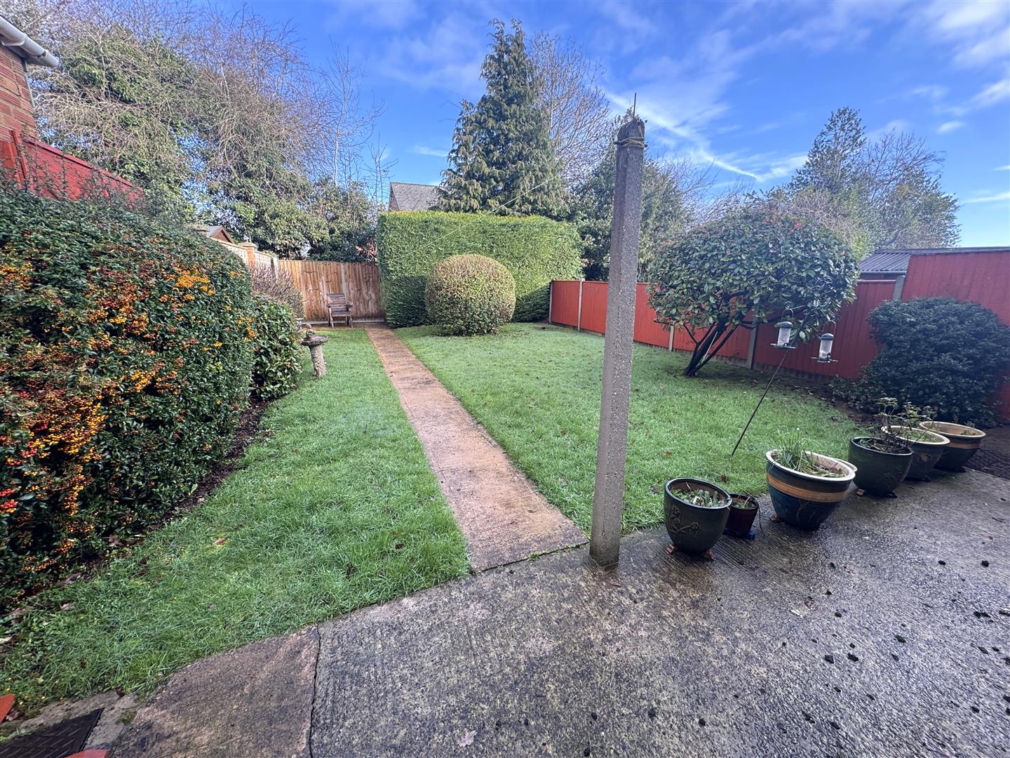 To the front of the property, there is a lawned area, borders surround, outside lighting. To the rear of the property, there is a private enclosed garden with a concrete patio area running the full length of the house. There is a pathway to the end with lawned areas, various shrubs and trees, fencing and walling surround. The rear gardens measures approximately 50' x 28'.