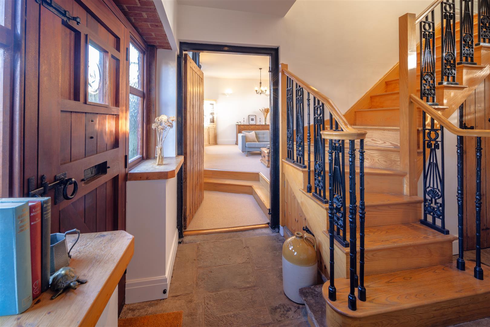 FROM THE ENTRANCE HALL, A LARGE WOODEN DOOR WITH STEP UP LEADS TO: