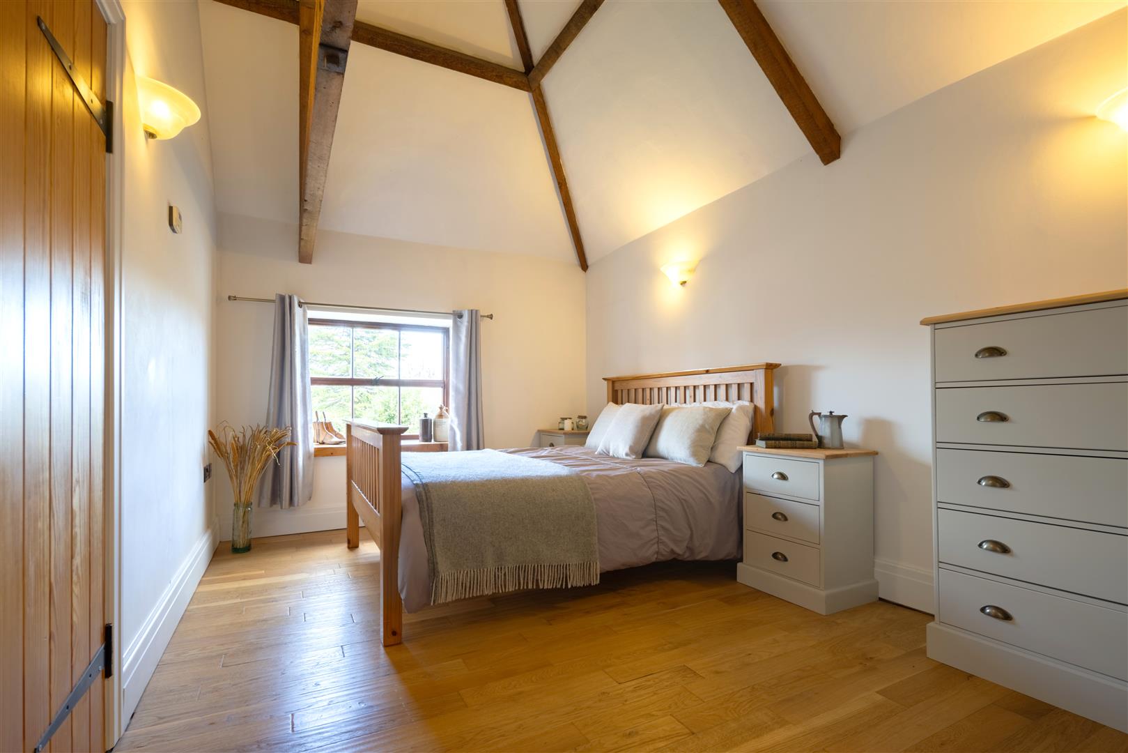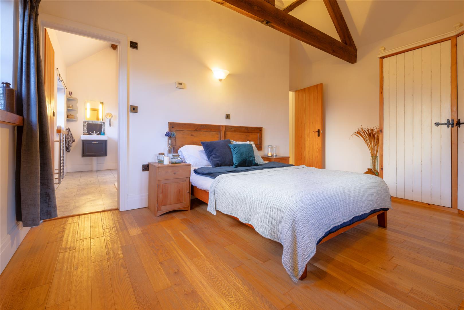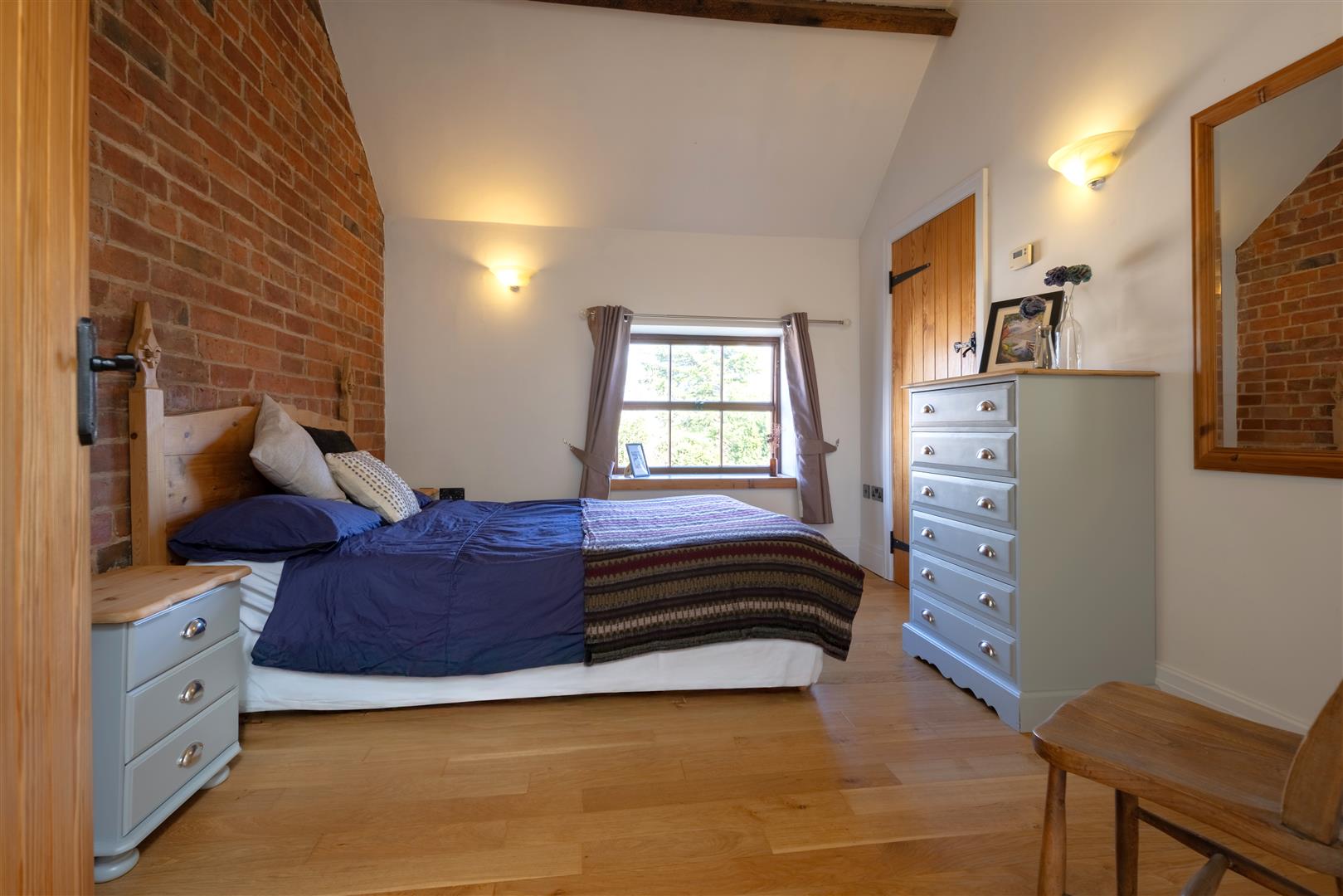 Master Suite - 4.83m x 3.15m (15'10 x 10'4) - Built-in triple wardrobes, exposed wooden flooring with under floor heating, vaulted ceiling with exposed timber work, thermostat controls, wall light fittings, front and side aspect windows offering lovely views towards St Mary's Church.