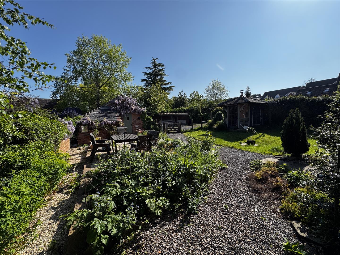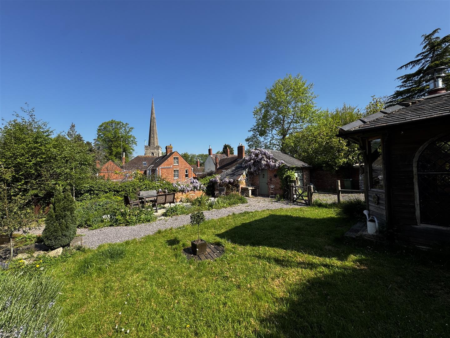 The rest of the gardens comprise of mature lawns with wooden-built FOLLY (measuring 7'6 x 7'3) and is accessed via wooden door and is complete with power, lighting and log burner. The property has a brick-built barbecue, wood store, patio seating area, mature vegetable garden, greenhouse, outside power points, lighting and further gravelled seating area to the side with gated pedestrian access to Church Street.