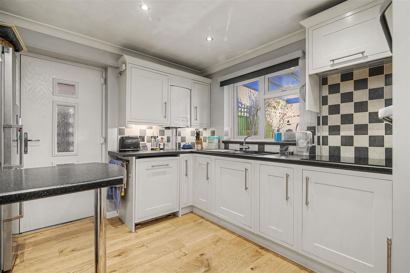 Kitchen / Breakfast Room - 3.43m x 3.02m (11'3 x 9'11) - Fitted kitchen to comprise one and a half bowl single drainer sink unit, mixer tap, cupboard under, range of base and wall mounted units, integrated electric double oven, cupboard above and below, dishwasher, space for fridge / freezer, four ring electric hob with cooker hood above, breakfast bar, gas-fired Glow-worm central heating plus domestic hot water boiler, rear aspect window, half glazed door through to the side.