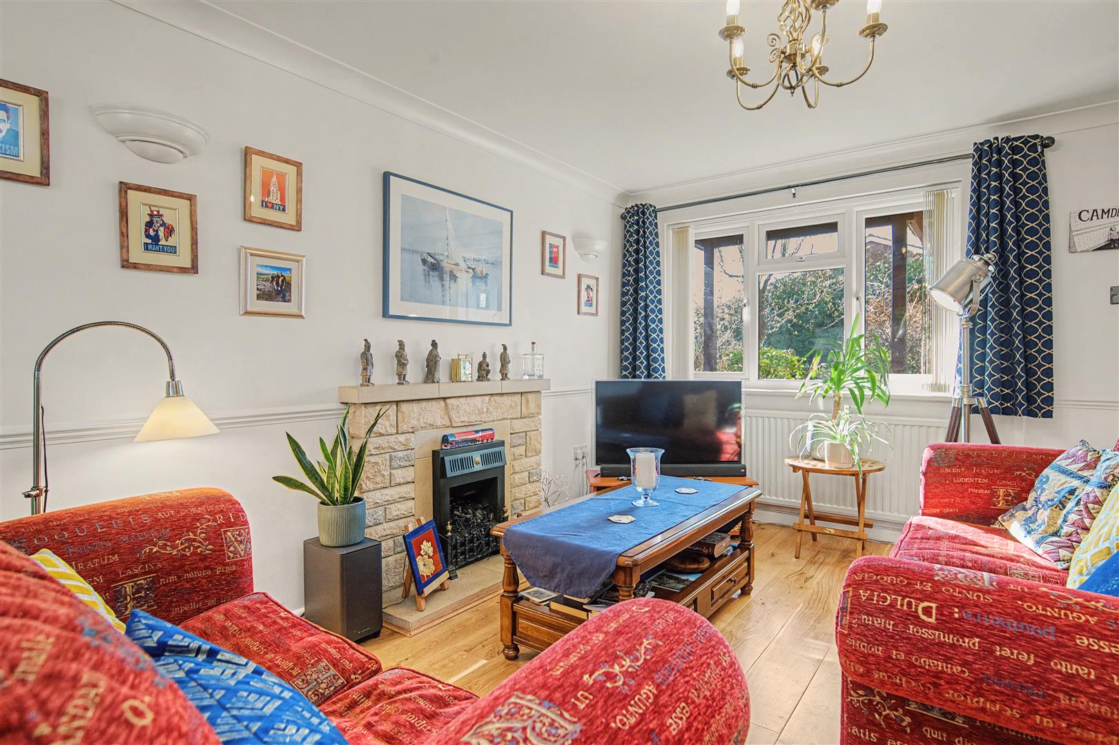 Lounge - 4.06m x 3.76m (13'4 x 12'4 ) - Stone fireplace with inset gas fire, exposed oak flooring, double and single radiators, large understairs storage cupboard, front aspect window with private outlook, opening into: