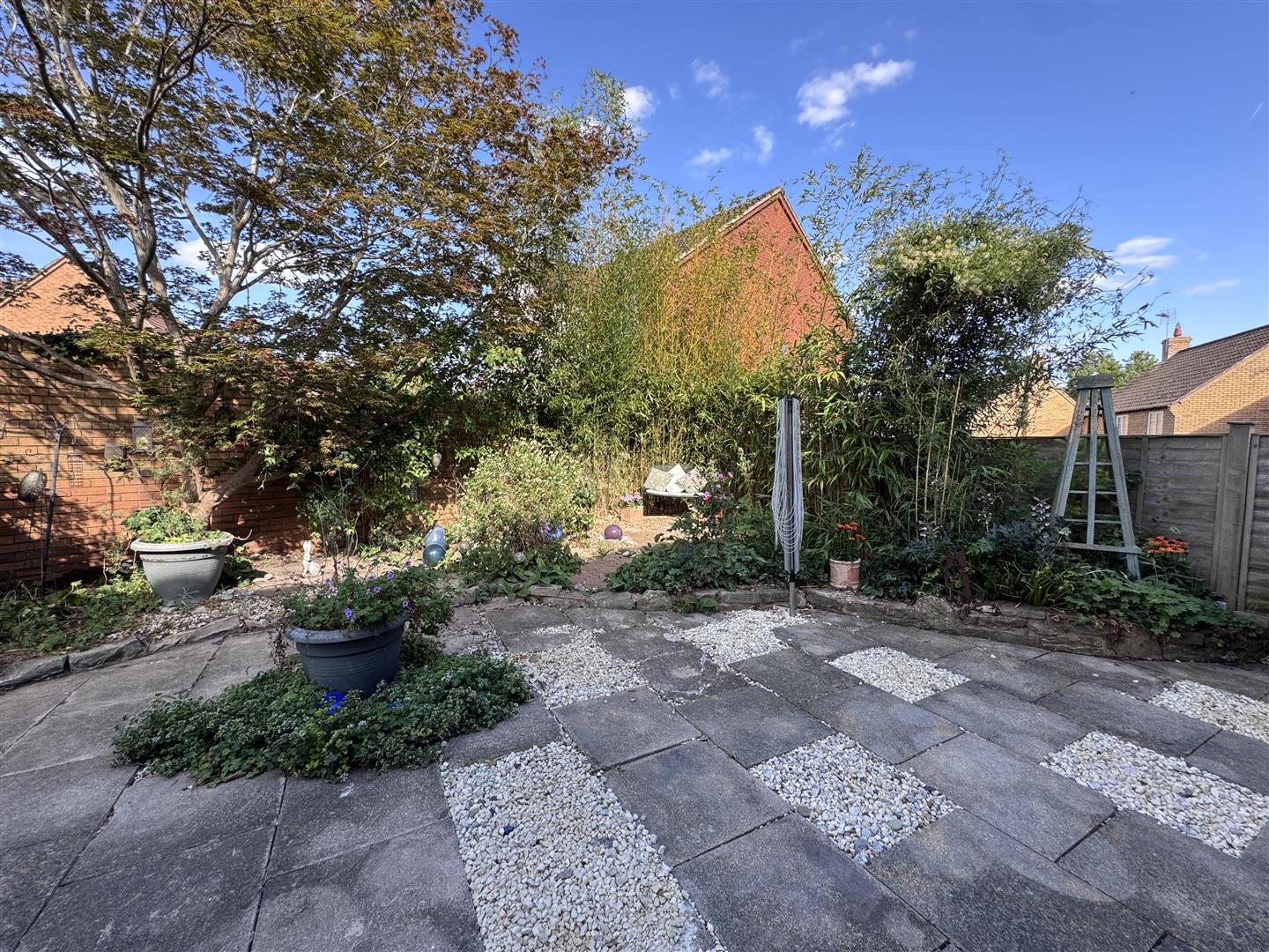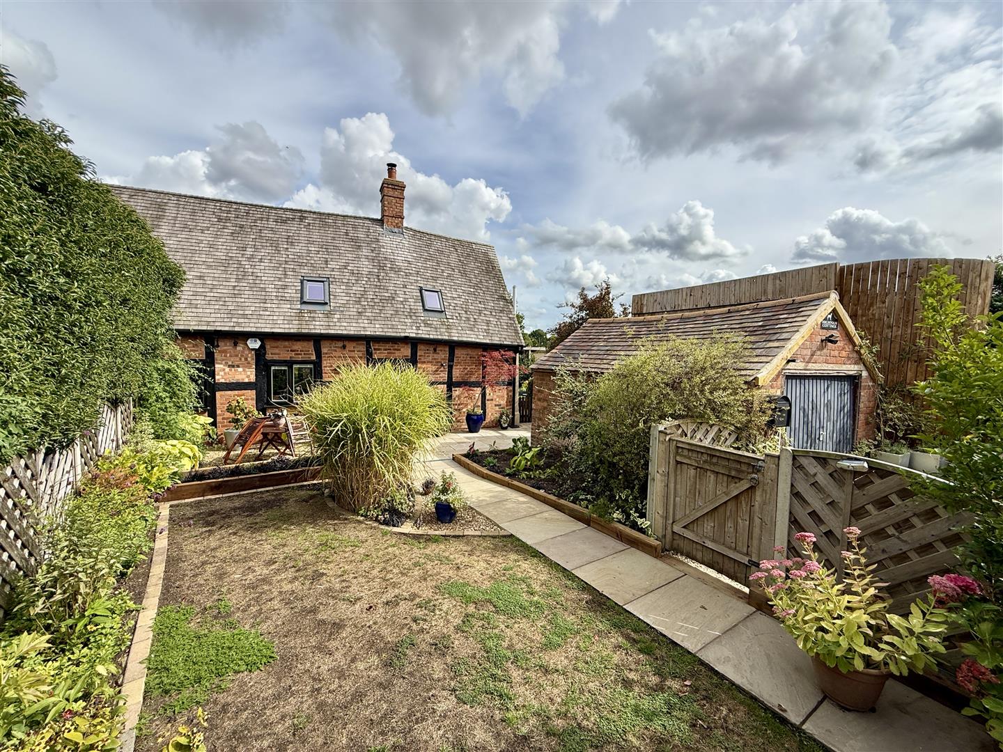 The rest of the front gardens are laid to block paving, offering more parking if required and there are planted borders. Gated side access leads to the rear gardens where there is a large patio seating area, outside water tap, shed, planted borders with an array of mature flowers, trees, shrubs and bushes, all enclosed by panel fencing and walling.