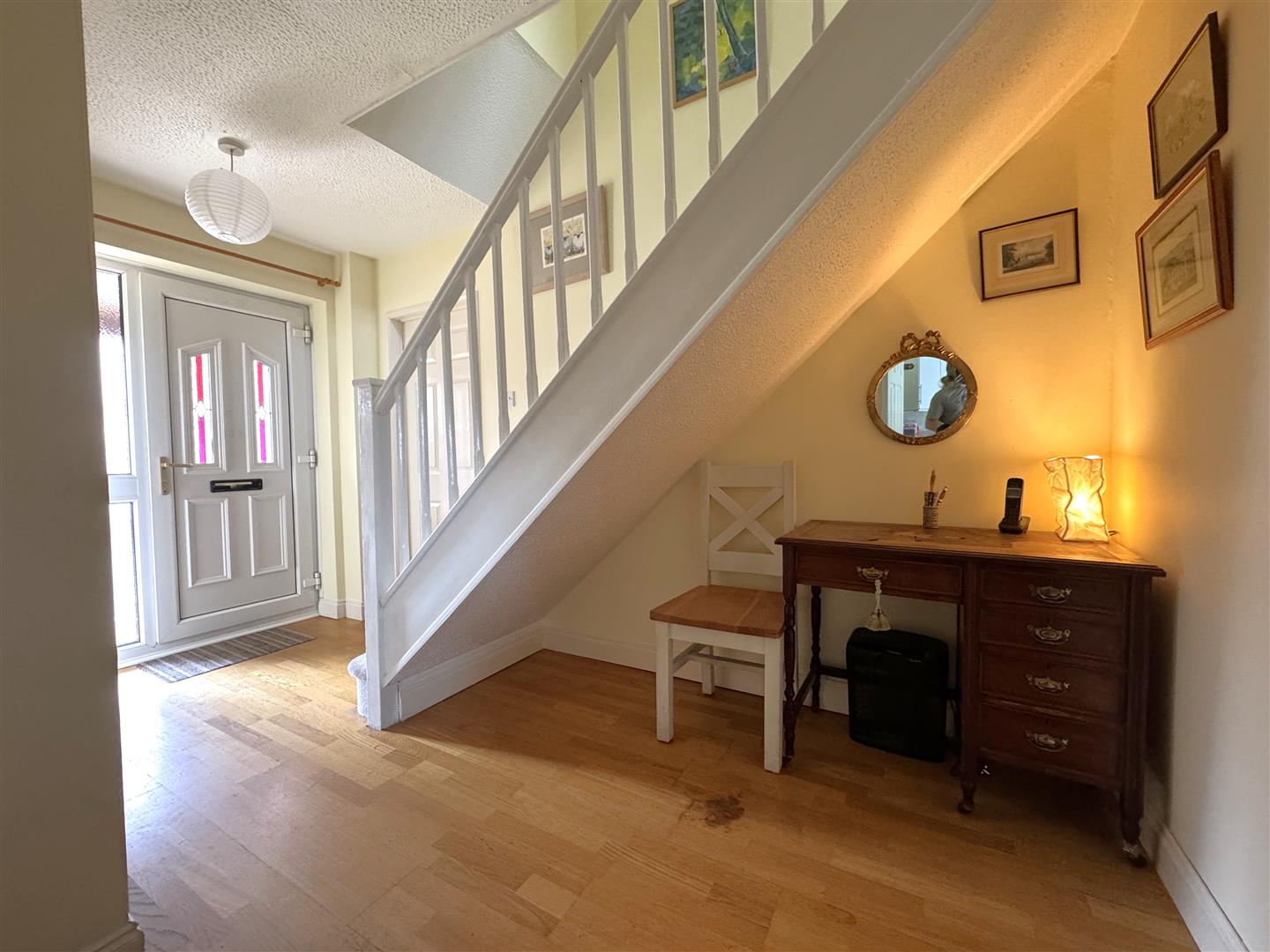 Entrance Hall - 3.86m x 3.00m max (12'8 x 9'10 max) - Wooden flooring, stairs leading off, open under stairs area personal door into the garage.