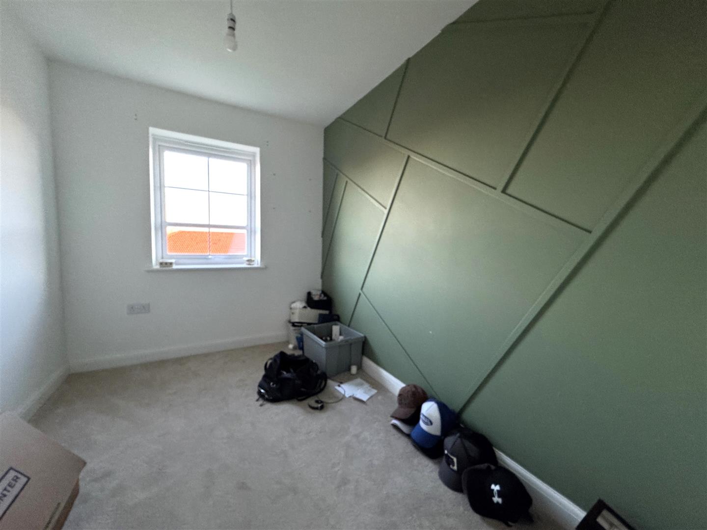 Master Bedroom - 3.53m x 3.53m max (11'7 x 11'7 max) - Panelled wall to one side, single radiator thermostat control, built in wardrobe with handing rail and shelving, chest of drawers, front aspect window.
