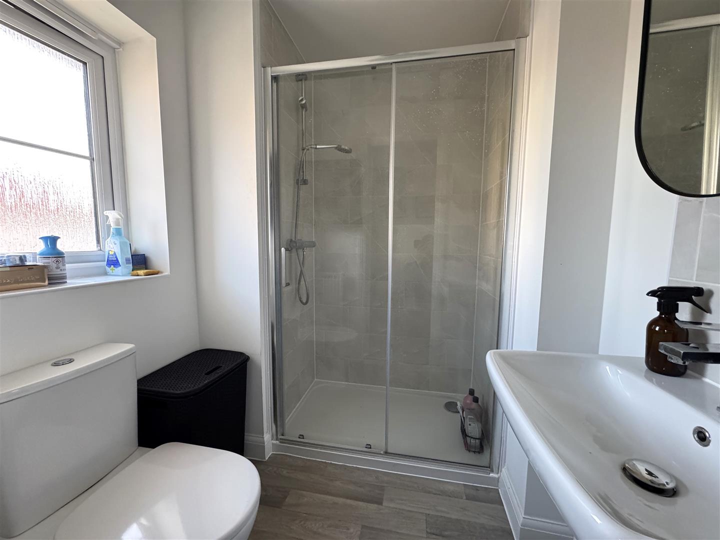 En-Suite - 1.88m x 1.68m (6'2 x 5'6) - Double shower cubicle accessed via sliding glazed screen with inset overhead shower system, tiled splashbacks, single radiator, wash hand basin with mixer tap, extractor fan, front aspect frosted window.