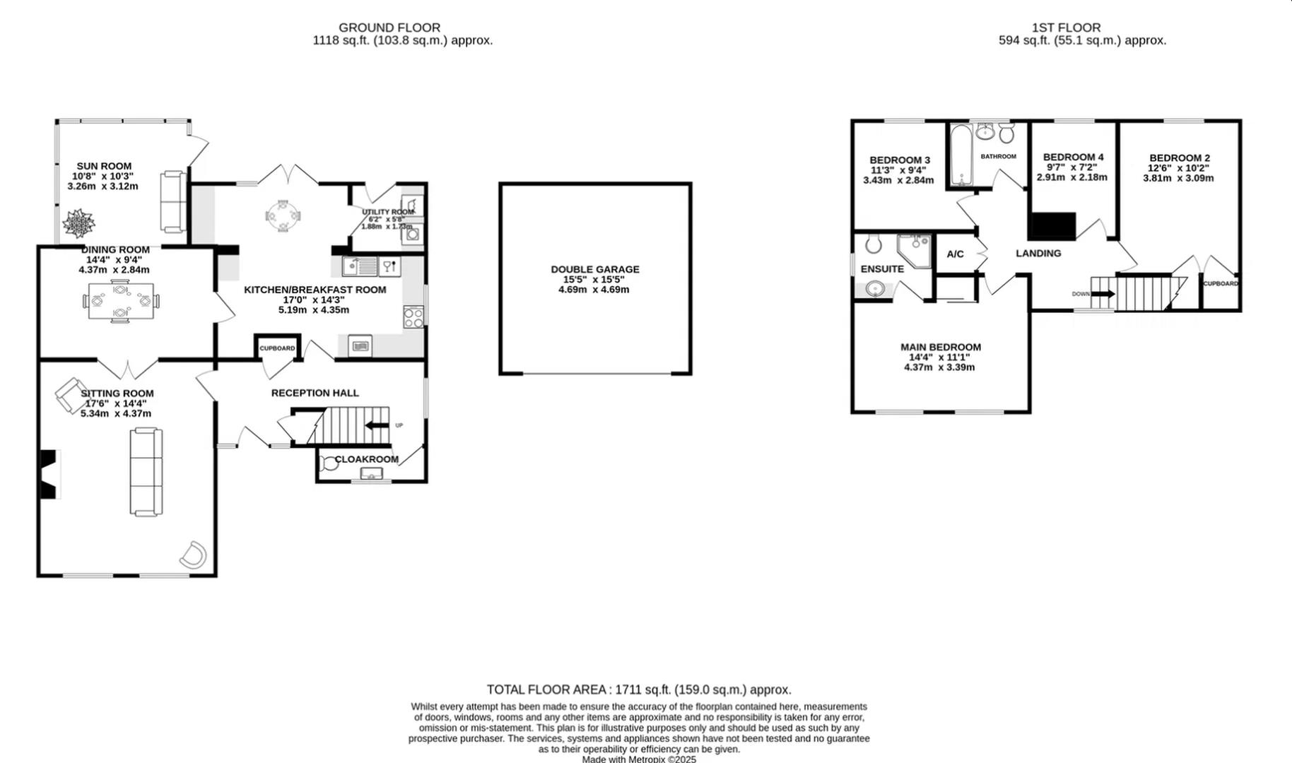 Detached Double Garage - 4.70m x 4.70m (15'5 x 15'5) - Access via roller shutter door.