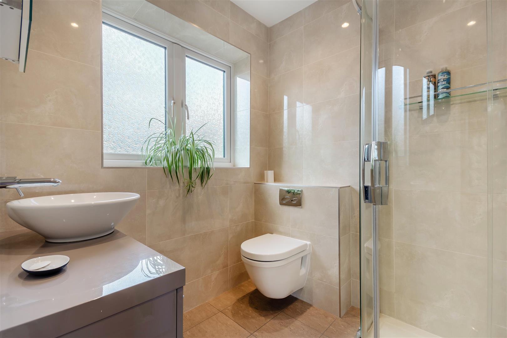 En-Suite - 2.21m x 1.52m (7'3 x 5') - Beautiful modern suite comprising double shower cubicle with inset detachable shower system, built-in WC, vanity wash hand basin with mixer tap and cupboards below, fully tiled flooring and walls, under floor heating, shaver point, inset spotlighting, extractor fan, side aspect frosted window.