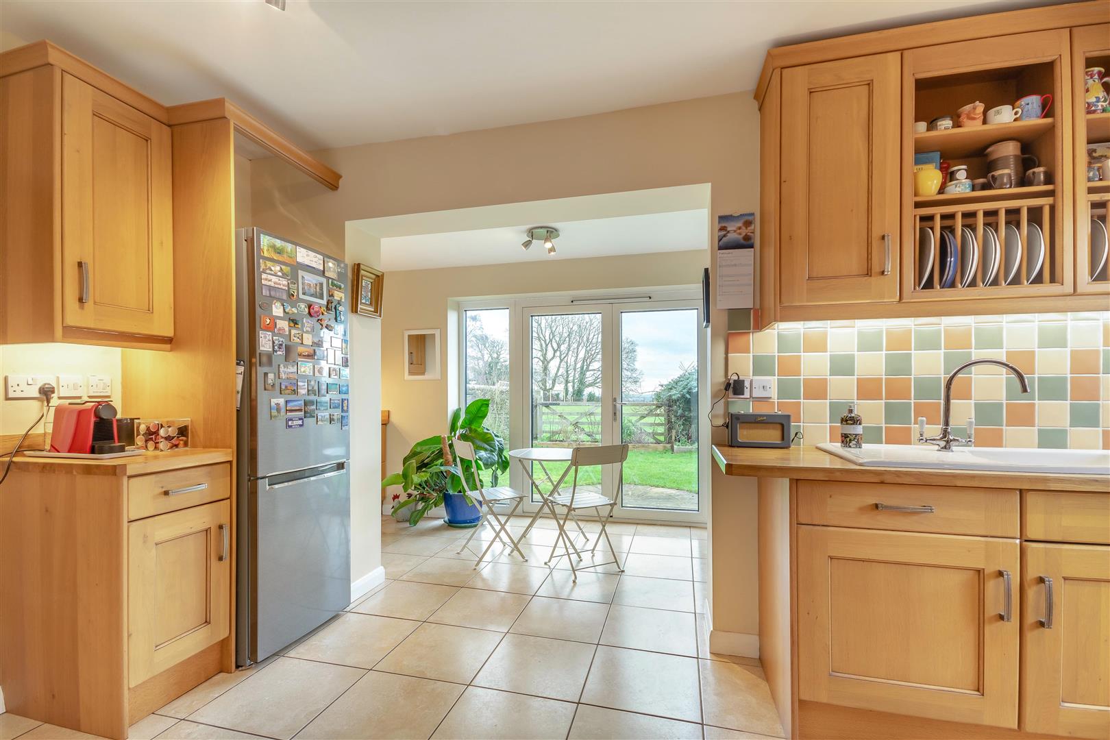 Breakfast Room - 3.96m x 1.45m (13'0 x 4'9) - Built-in units, tiled floor, rear aspect window, double opening French doors to patio and gardens enjoying far reaching views towards Cleeve Hill. Glazed wooden door to: