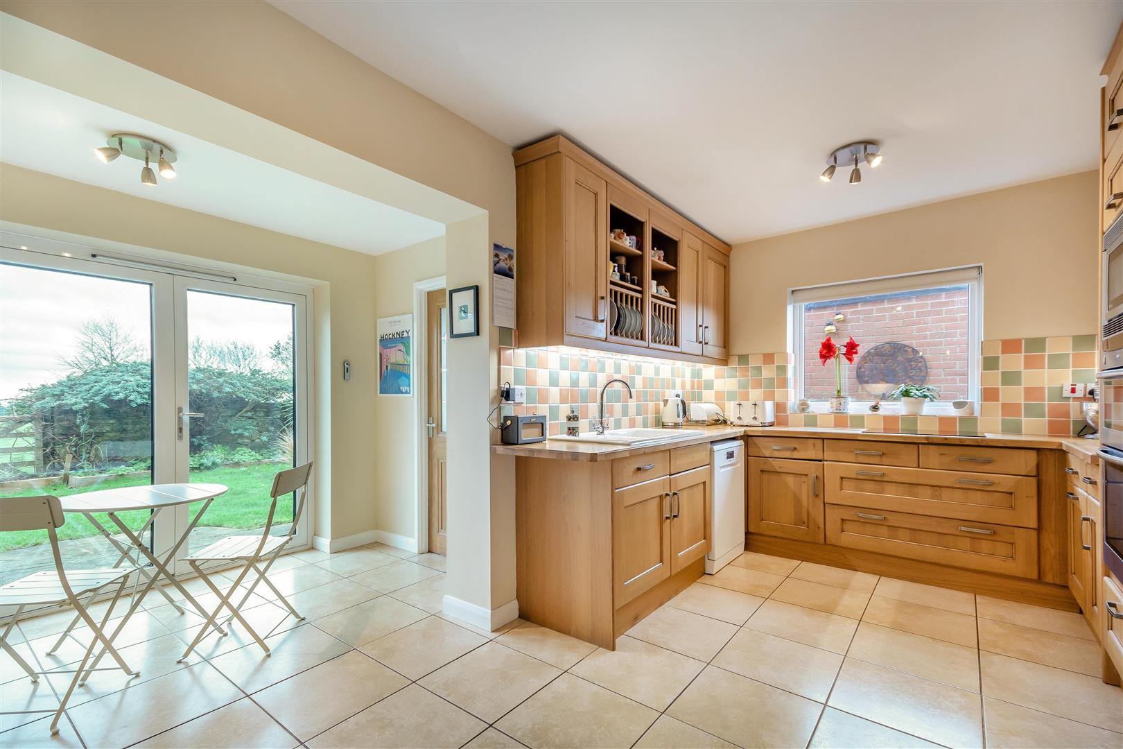 Kitchen - 5.41m x 2.82m (17'9 x 9'3) - Alternatively accessed from the entrance hallway and comprising of a range of base and wall mounted units with worktops and tiled splashbacks, integrated oven, grill and microwave, plumbing for dishwasher, NEFF hob, Belfast sink drainer sink unit with mixer tap, tiled flooring, modern panelled radiator, side aspect window. Opening through to: