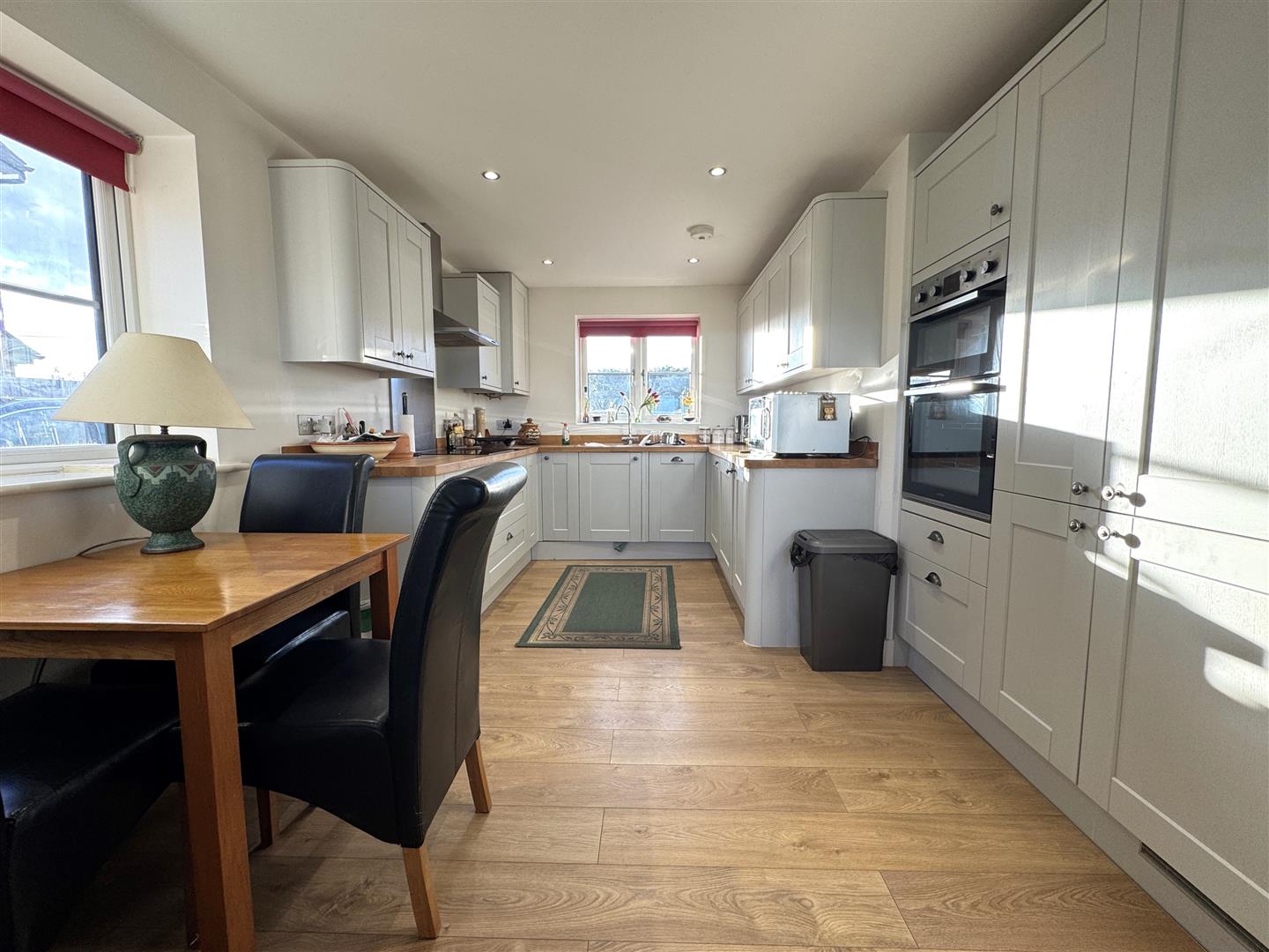 Kitchen / Dining Room - 4.17m x 3.18m (13'8 x 10'5) - Fitted Shaker style kitchen with a range of base and wall mounted units with wooden worktops and splashbacks. Integrated appliances to include dishwasher, washing machine, fridge and freezer, four ring hob with stainless steel splashback and extractor fan over, double oven, EHC electric boiler supplying the hot water and central heating, inset spotlighting, side and rear aspect windows.