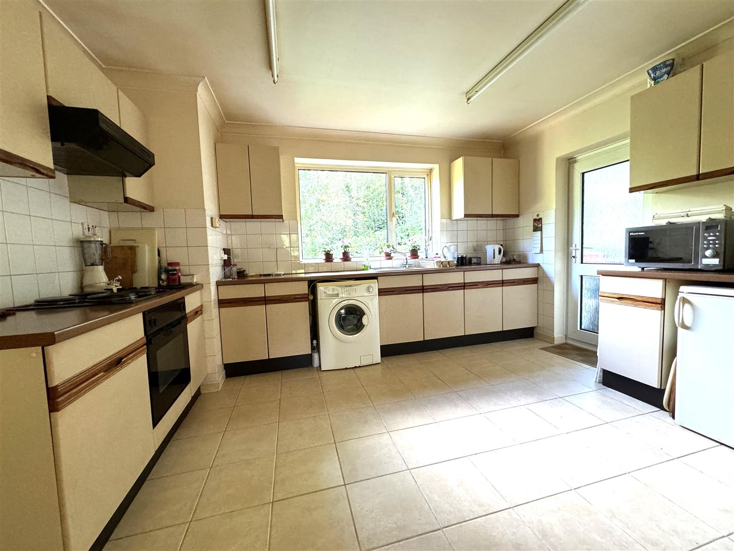 Kitchen/Breakfast Room - 4.17m x 3.38m (13'08 x 11'01) - Range of base and wall mounted units, laminated worktops, tiled splashbacks, single drainer sink unit, mixer tap, plumbing for washing machine, integrated oven, four ring ceramic hob, extractor fan, space for under counter fridge and freezer, double radiator, tiled floor, thermostat controls, rear aspect window. Double glazed door to: