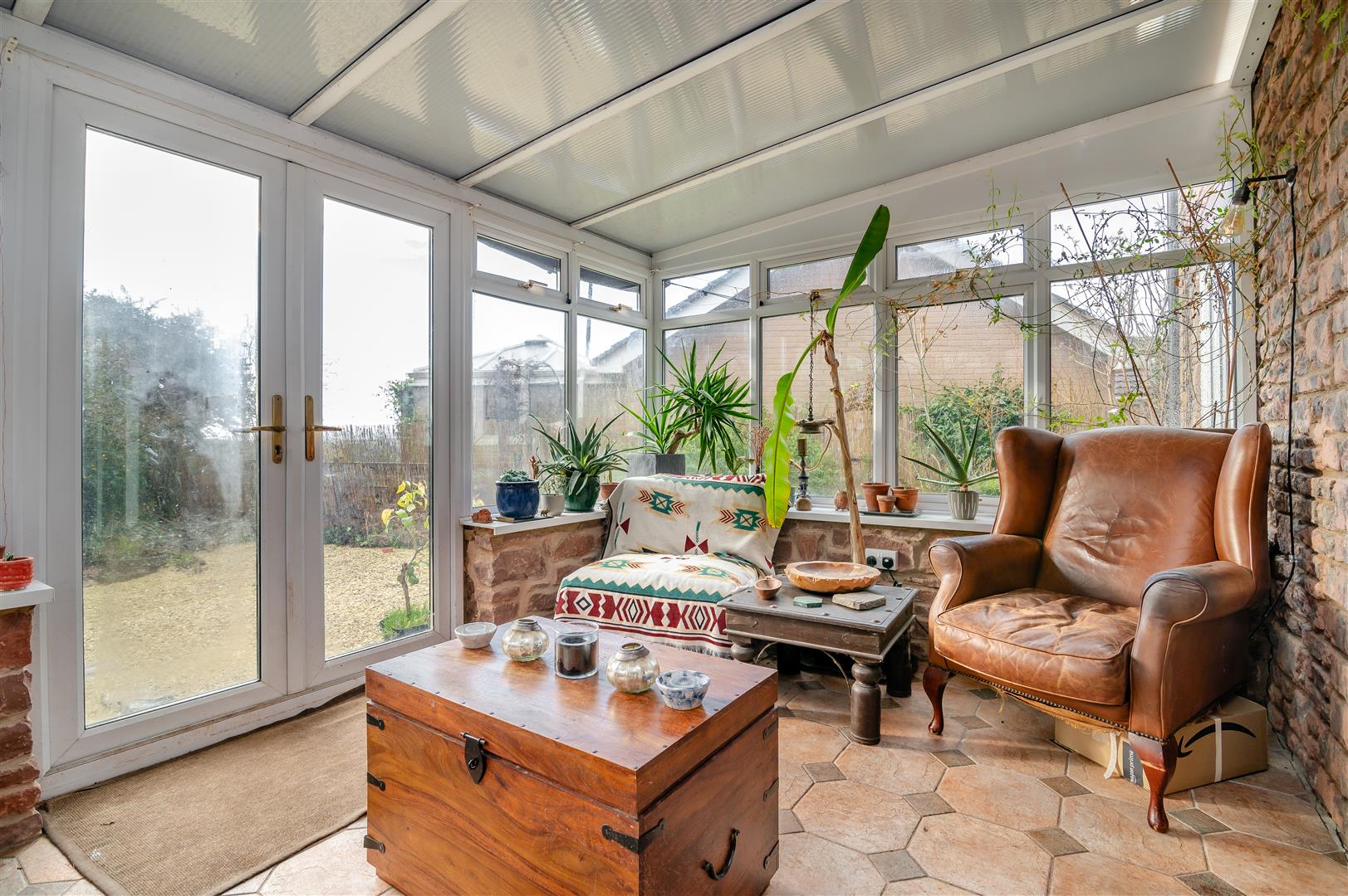 Conservatory - 4.37m x 2.92m (14'04 x 9'07) - Tiled flooring, radiator, power points, double doors leading out to the garden, exposed stone work, double glazed UPVC windows all the way round with poly carbonate roof.