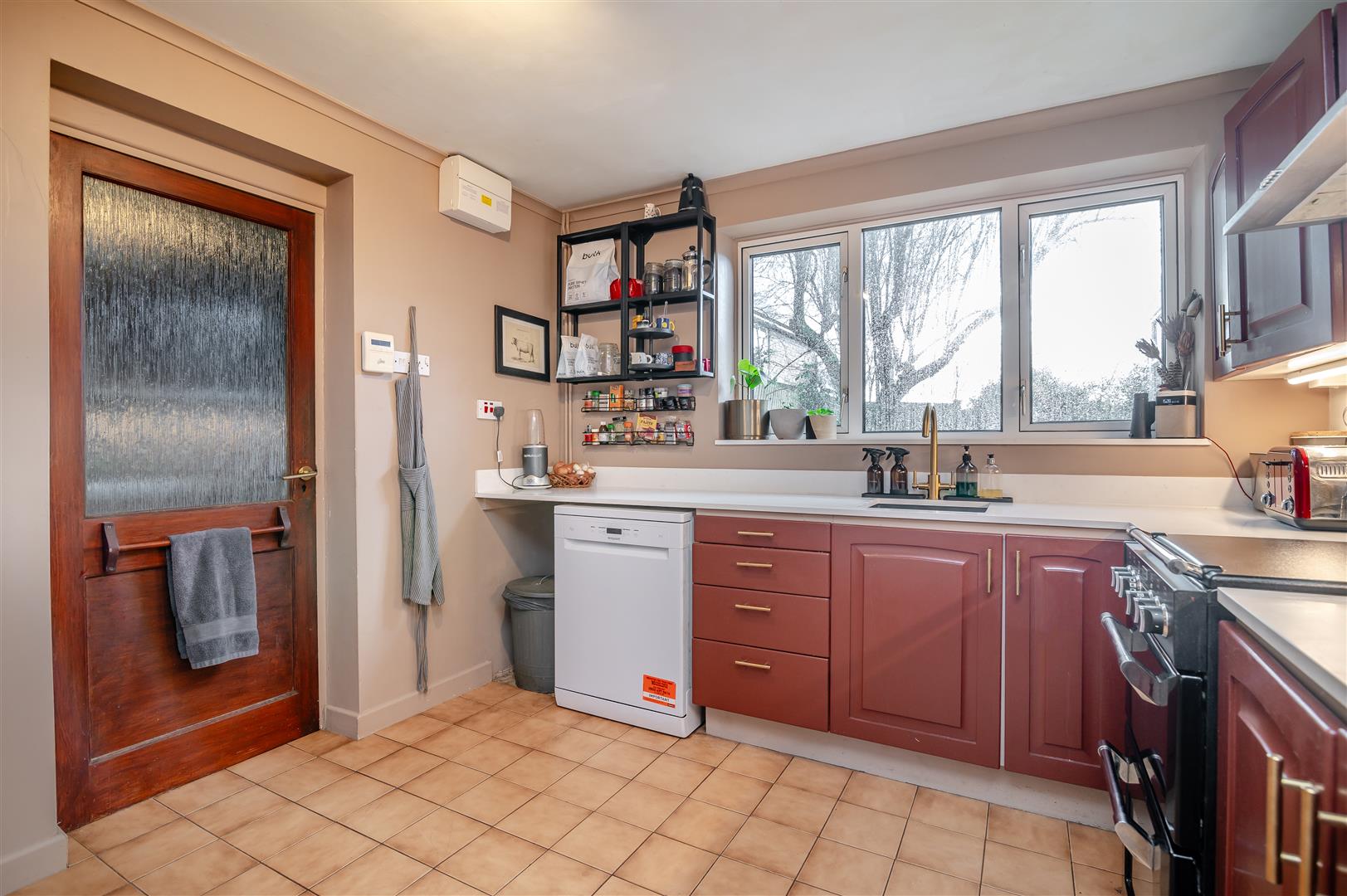 Kitchen - 3.25m x 2.97m (10'08 x 9'09) - Tiled flooring, a range of base, wall and drawer mounted units, stone worktops and splashbacks, single bowl granite sink unit with mixer tap above, space for an oven, space and plumbing for a dishwasher, ample space for table and chairs, radiator, power points, coving, rear aspect double glazed UPVC window.