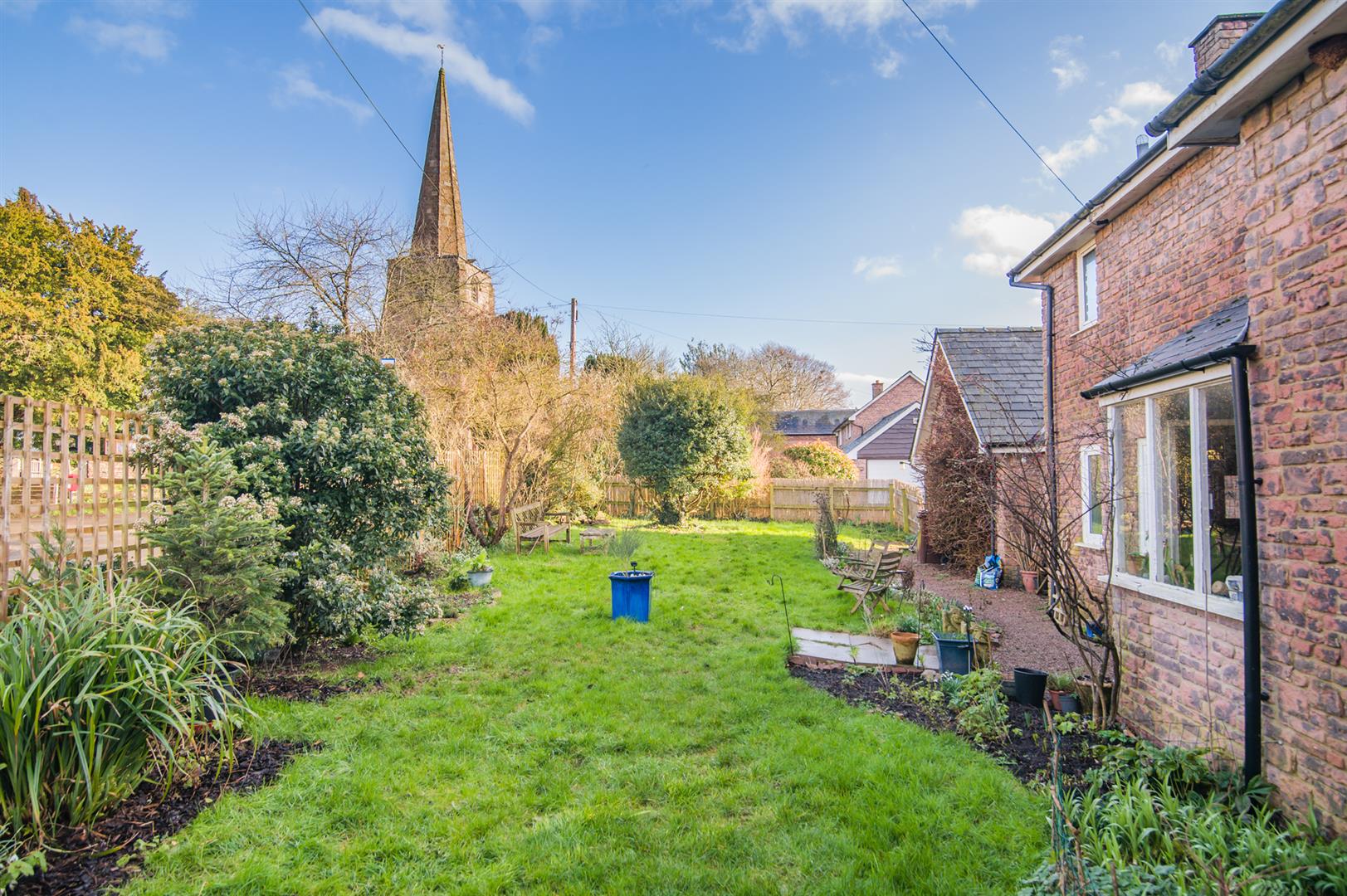 The garden of the property is mostly to the front, which has a lawned area with mature flower borders, low level stone walling and a lovely aspect out to Linton Church. The property really is in the heart of the village. The garden then wraps around the side of the property to the rear and is fully dog proof fenced with new trellis fencing.