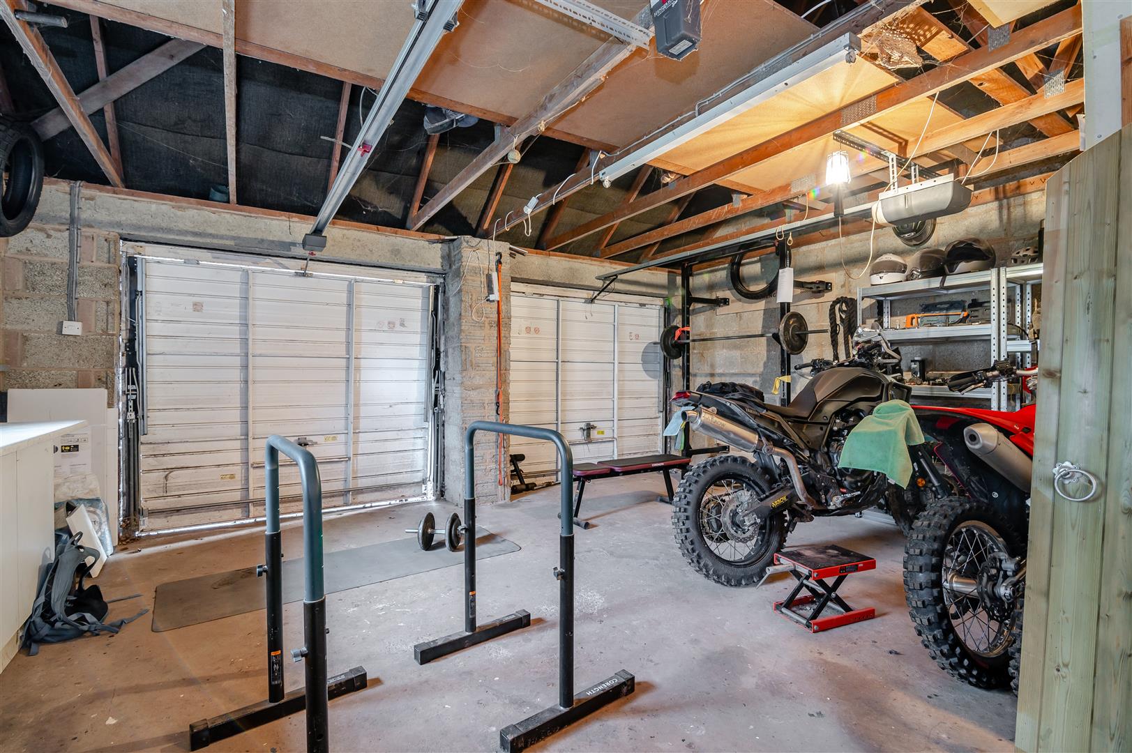 Double Garage - 5.74m x 5.36m (18'10 x 17'07) - Power and lighting, internal storage room.