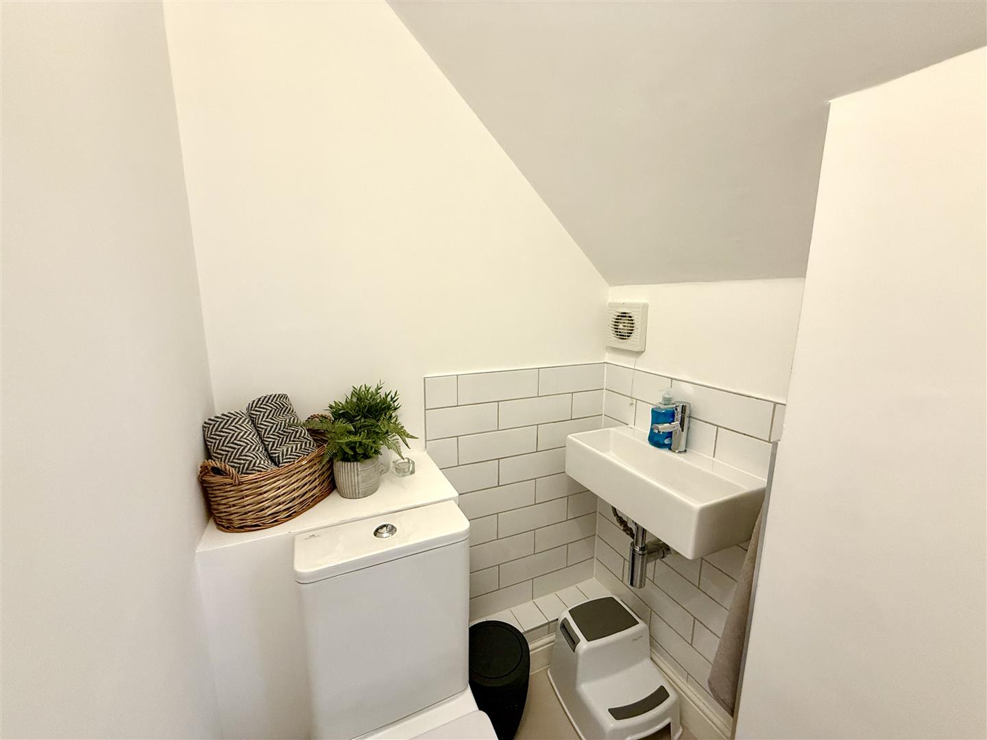 Cloakroom - 2.03m x 1.24m (6'8 x 4'1) - Tiled flooring, sink with tap over, close coupled WC, partially tiled walls, extractor fan.