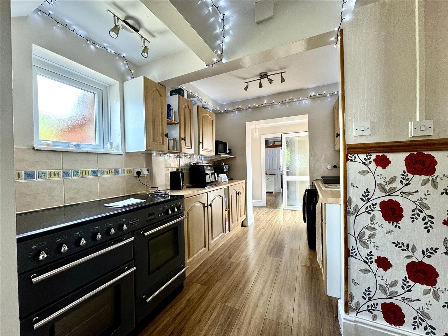 Kitchen - 3.40m x 1.98m (11'2 x 6'6) - One and a half bowl sink unit with mixer tap, range of base and wall mounted units with laminated worktops and tiled splashbacks, electric range oven, side aspect frosted window. Opening through to: