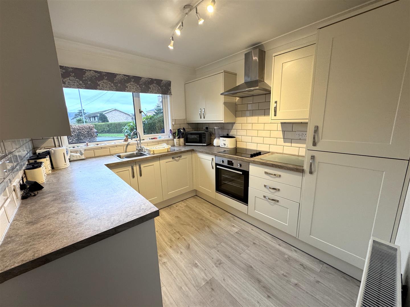Kitchen - 2.97m x 2.57m (9'9 x 8'5 ) - Modern re-fitted kitchen to include a range of base, wall mounted units, laminated work tops and tile splash backs. Integrated appliances to include, Lamona oven with four ring hob and extractor fan over, fridge / freezer, washing machine, tumbler dryer and dishwasher. Single drainer stainless steel sink with mixer tap, double radiator, front aspect window, built in wine rack.