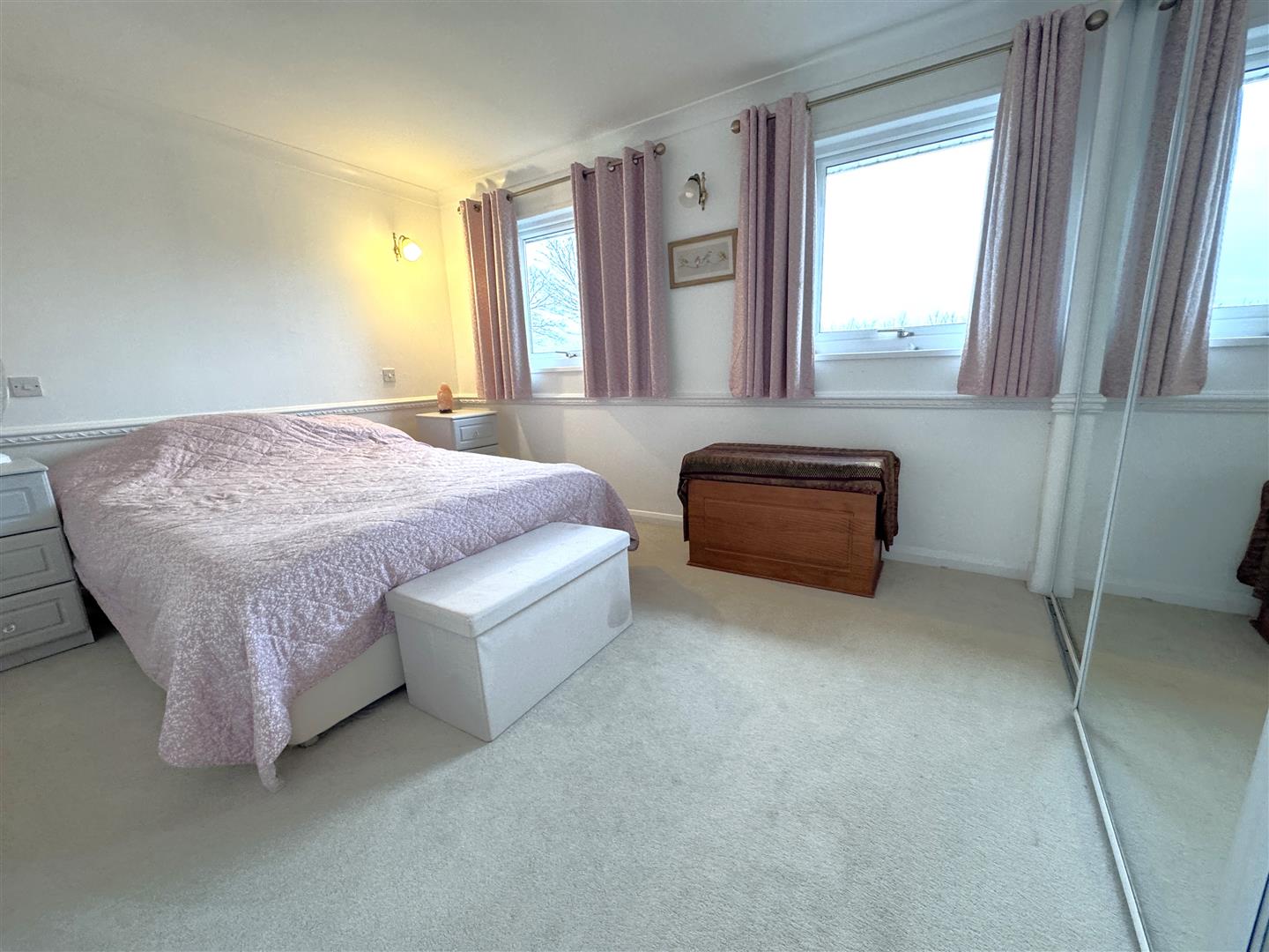 Master Bedroom - 4.42m x 2.95m (14'6 x 9'8) - Tripled mirror wardrobe recess, single radiator, wall light fittings, two rear aspect windows.