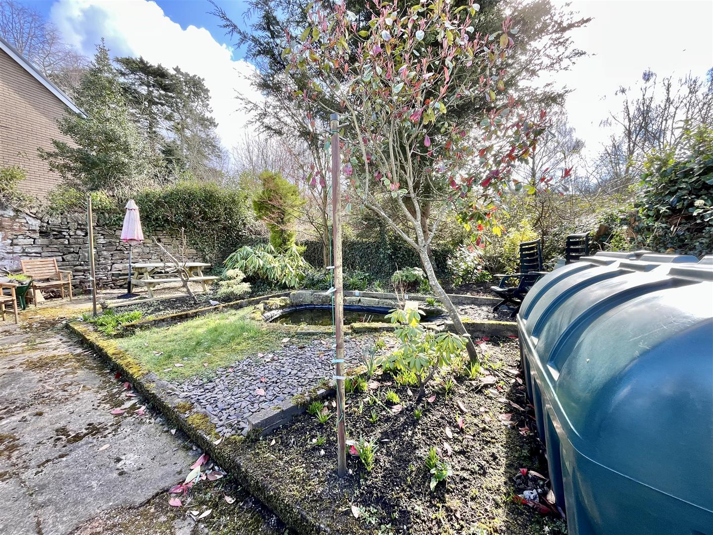 Outside - Directly to the rear of the property, accessed from the kitchen, is the private southerly facing courtyard garden laid to patio with outside tap, attractive flower borders, capped well and attractive stone wall surround. A gate from the courtyard garden provides access to a footpath that leads to an additional detached garden area with small pond and the oil tank.