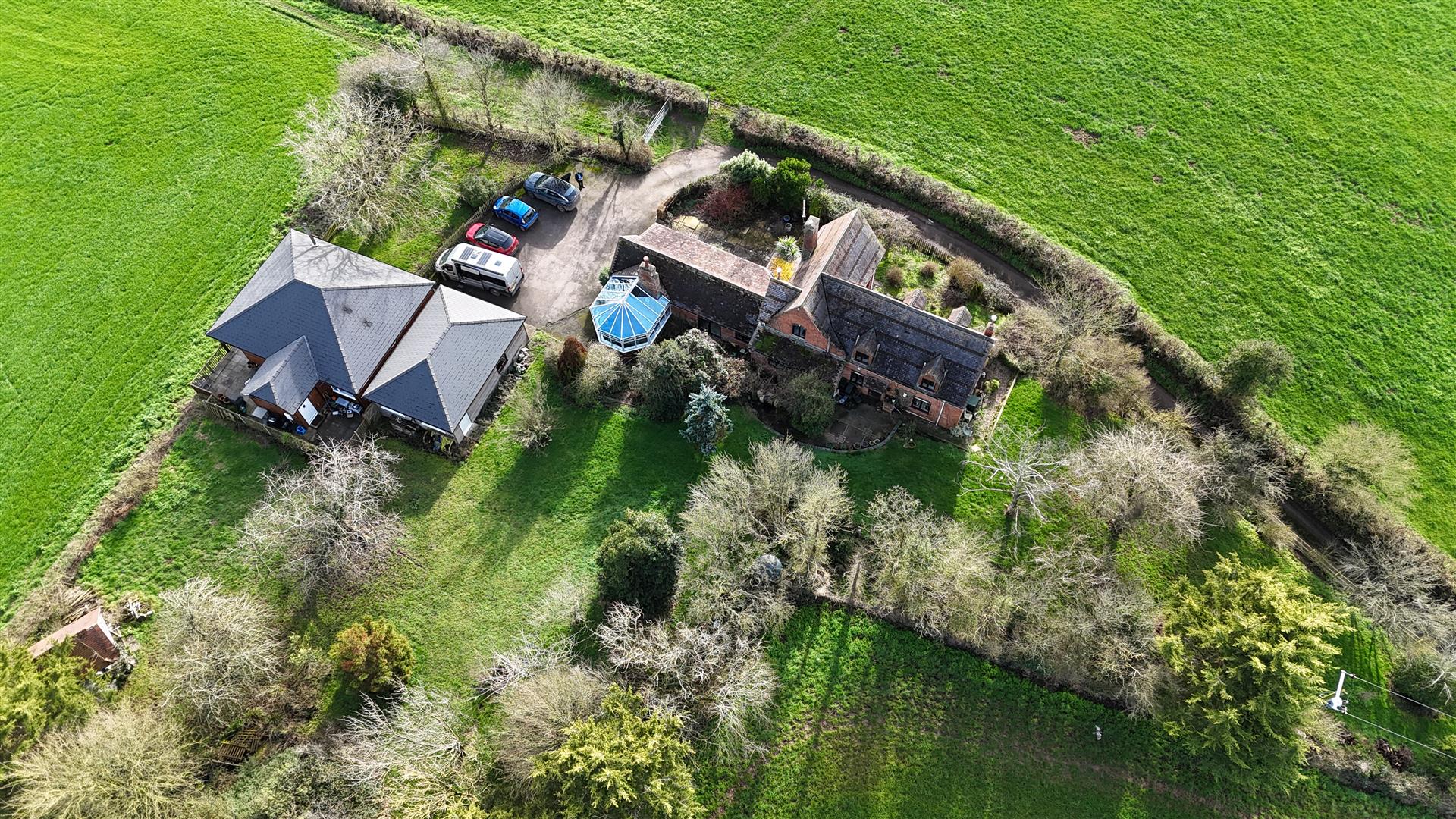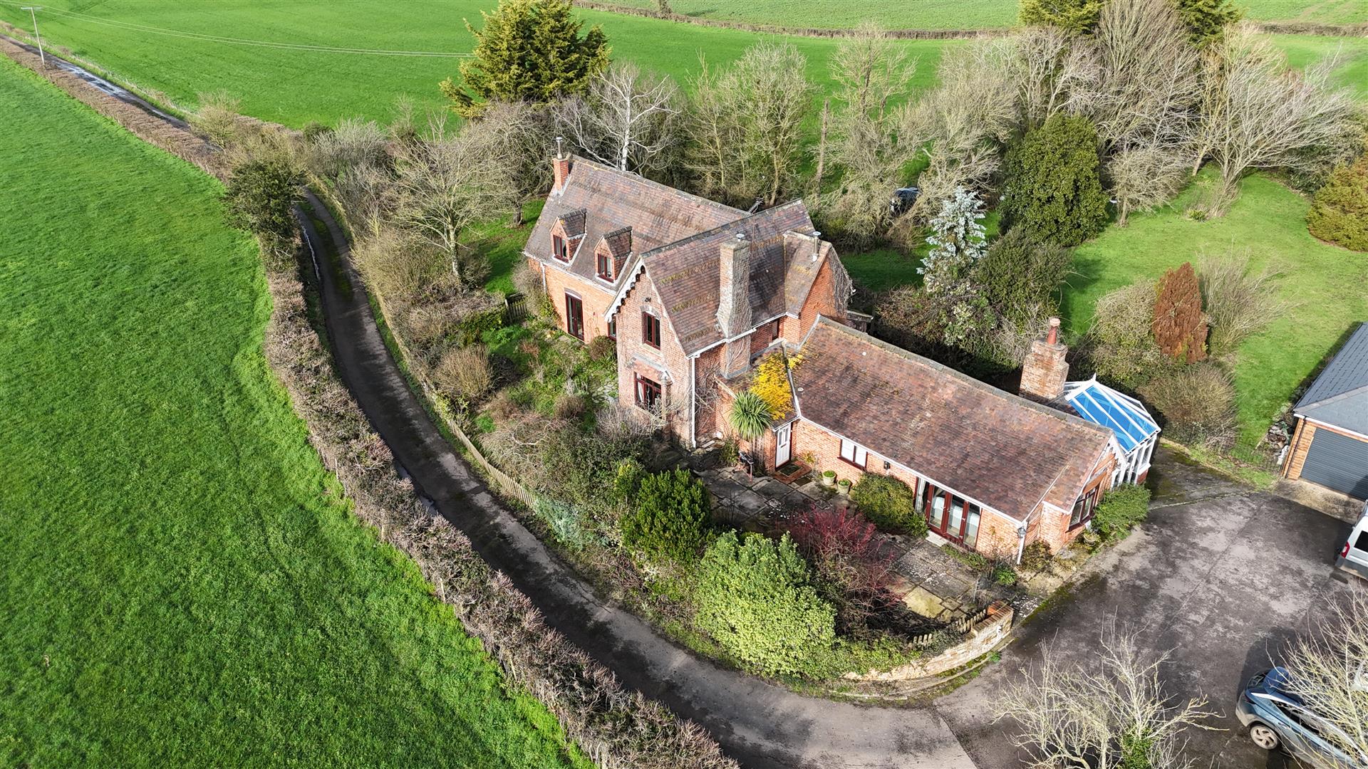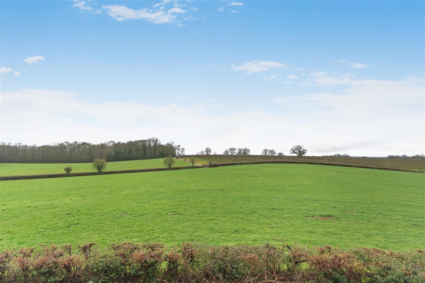 The property has lovely mature gardens surrounding the property with various lawned areas, flower beds and borders, mature shrubs, bushes and trees etc., outside lighting, pathways and patios. The gardens have a lovely outlook onto surrounding fields and farmland, with the plot approaching three quarters of an acre.