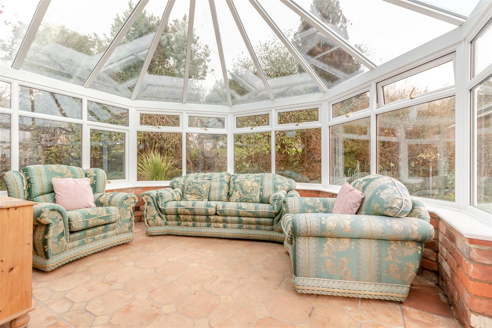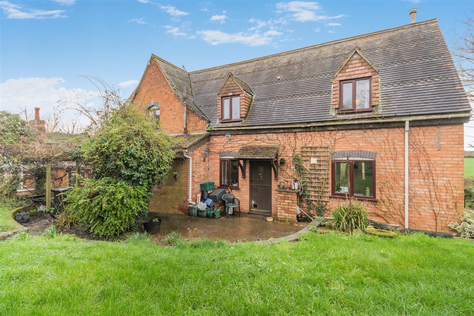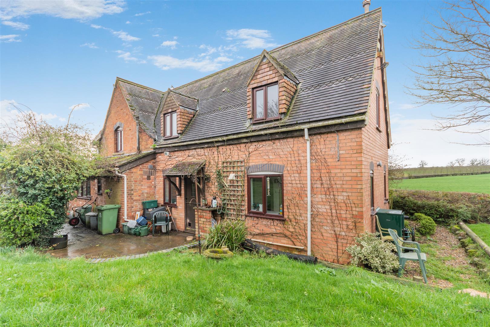 The property has lovely mature gardens surrounding the property with various lawned areas, flower beds and borders, mature shrubs, bushes and trees etc., outside lighting, pathways and patios. The gardens have a lovely outlook onto surrounding fields and farmland, with the plot approaching three quarters of an acre.